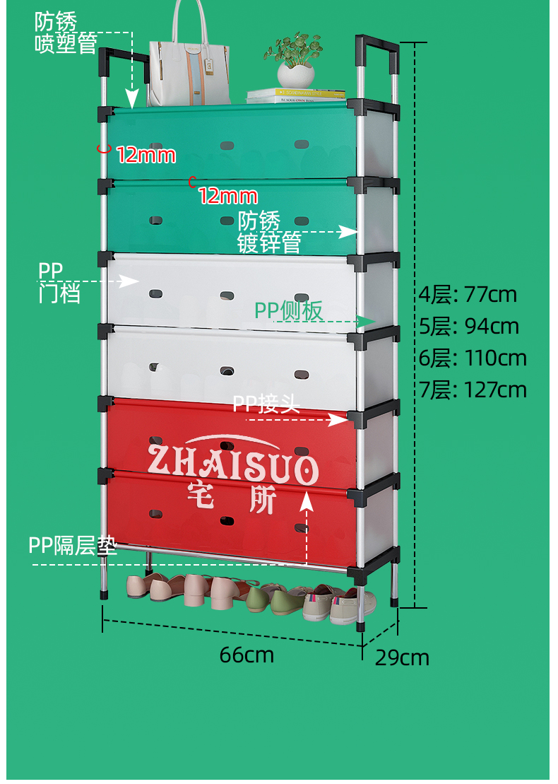 - ¥46.907层-长66厘米【加厚门档多巴胺每层放3双】强烈推荐