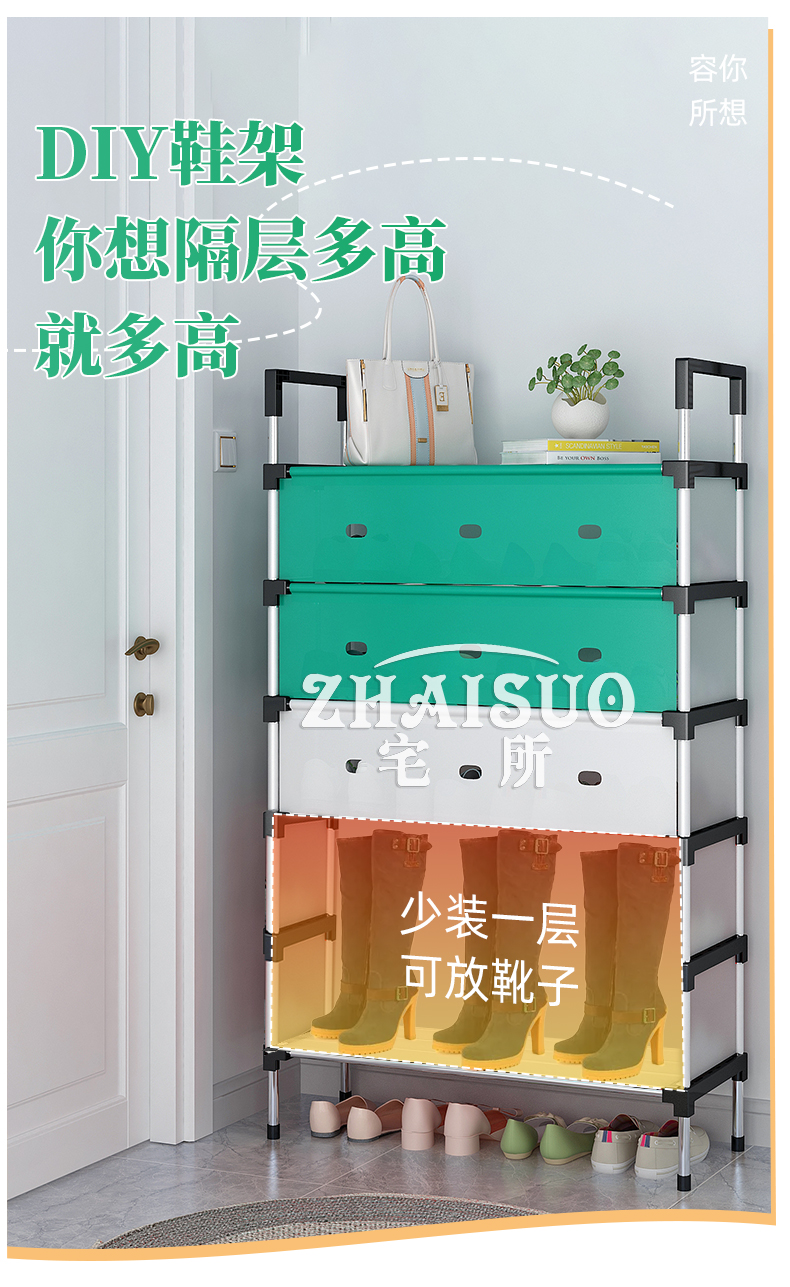 - ¥31.904层-长66厘米【加厚门档多巴胺色每层放3双】