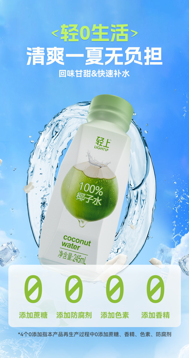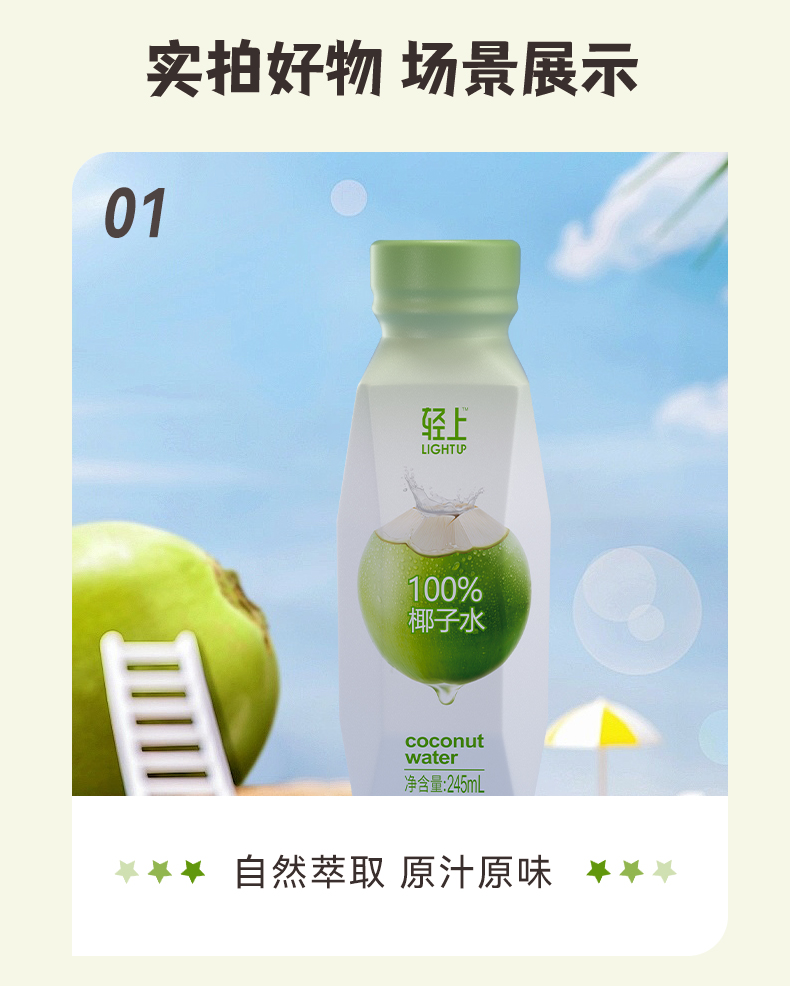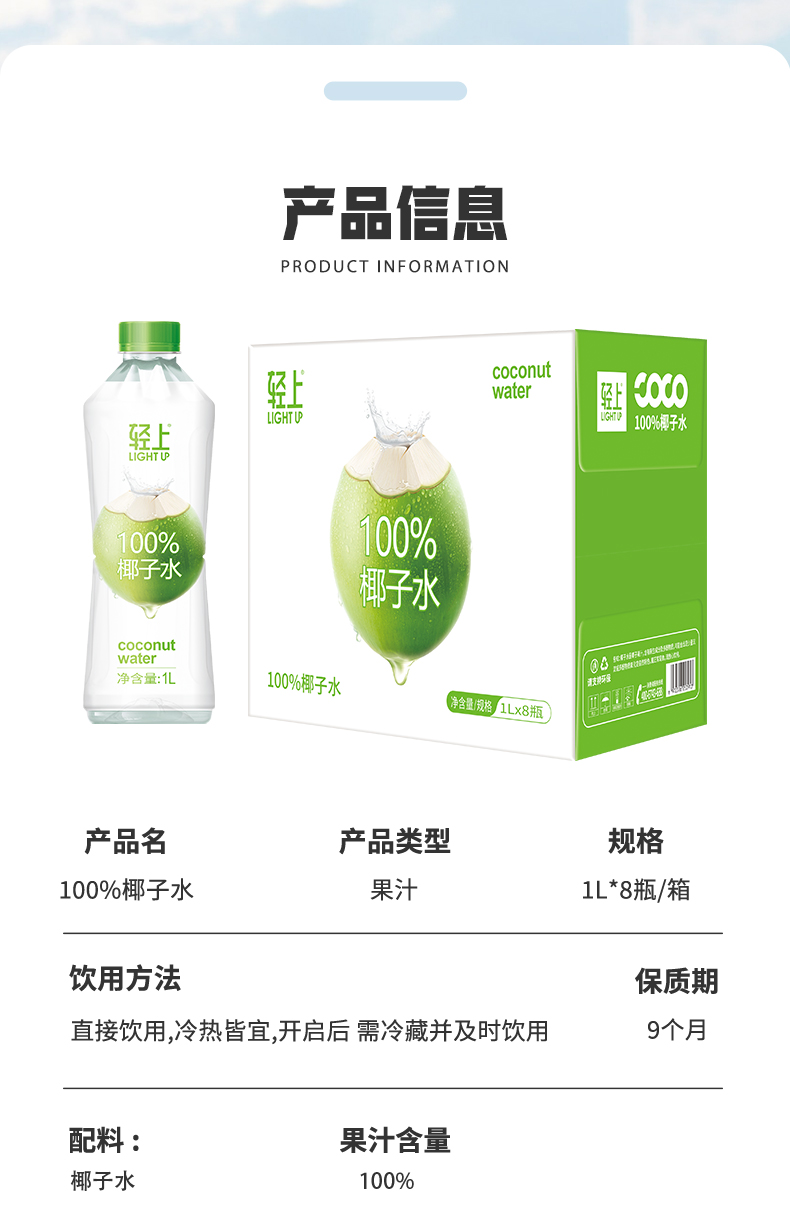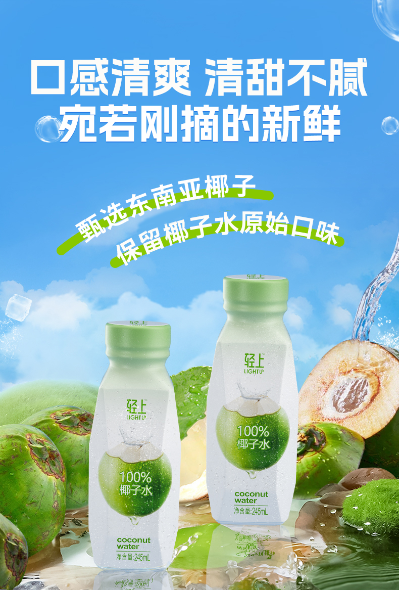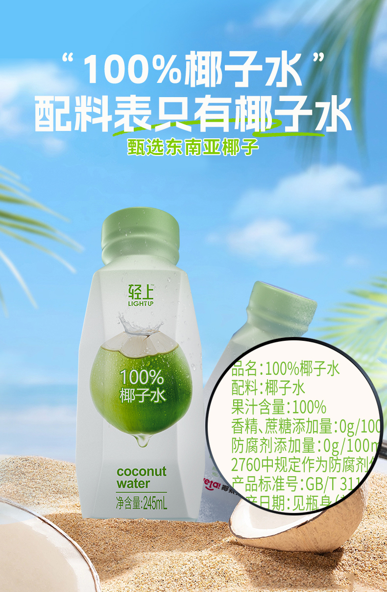 轻上NFC100%椰子水椰子汁【孕妇可喝】清爽椰子水饮料瓶装好喝