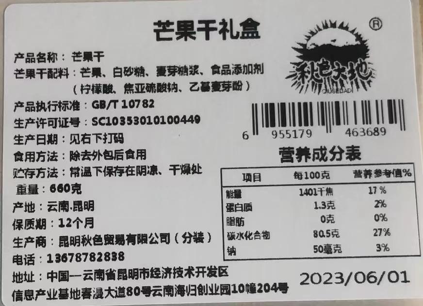 秋色大地云南特产好吃芒果干送礼新鲜美味SCK