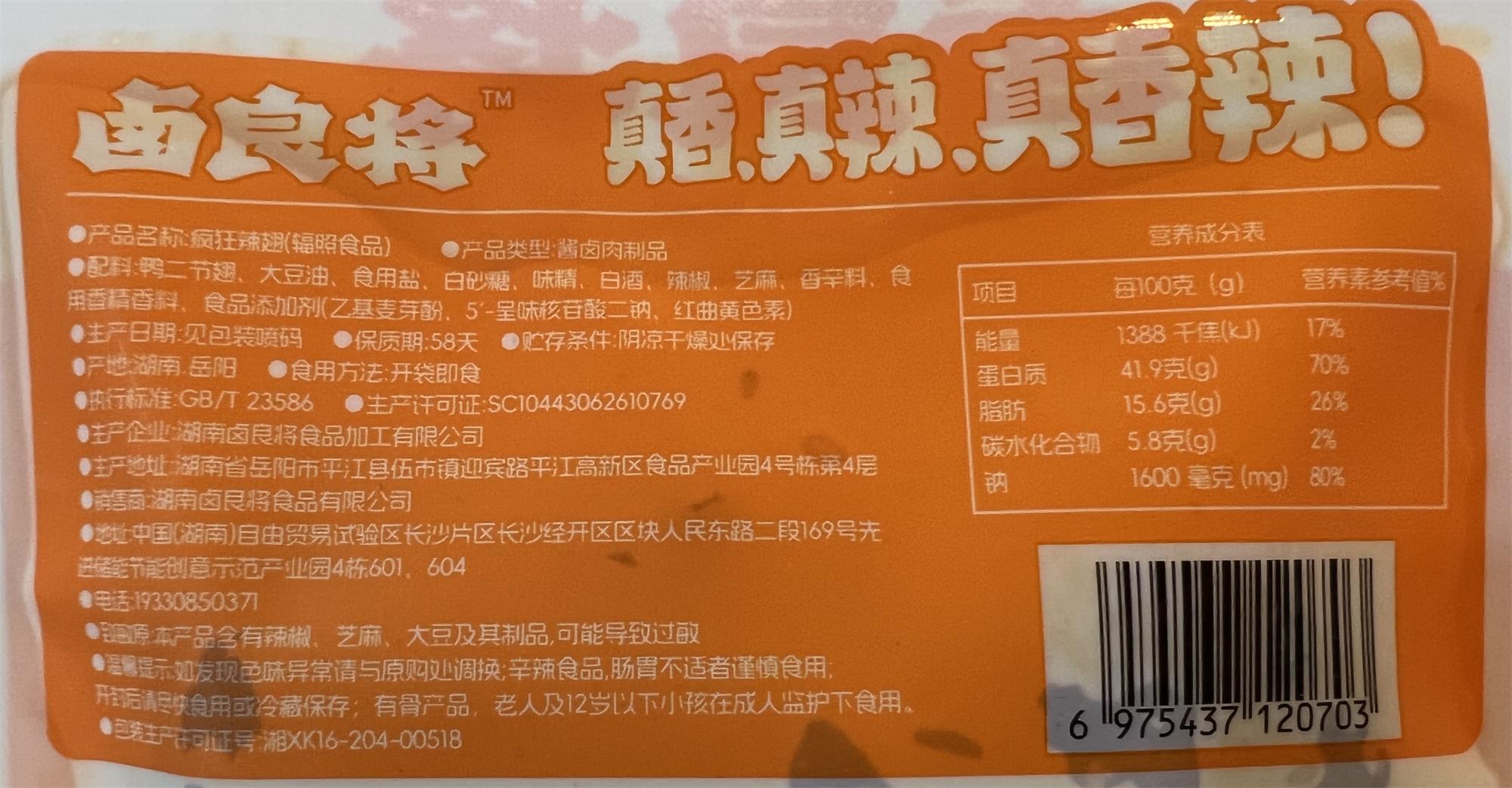 - ¥20.90重辣味(100g)1包+黑鸭味(100g)1包