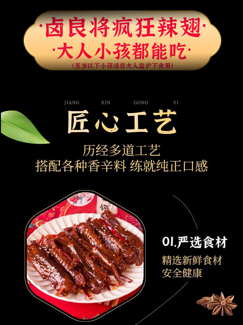 【爆品推荐】卤良将香辣鸭翅爆辣辣翅辣味熟食卤味解馋零食128克