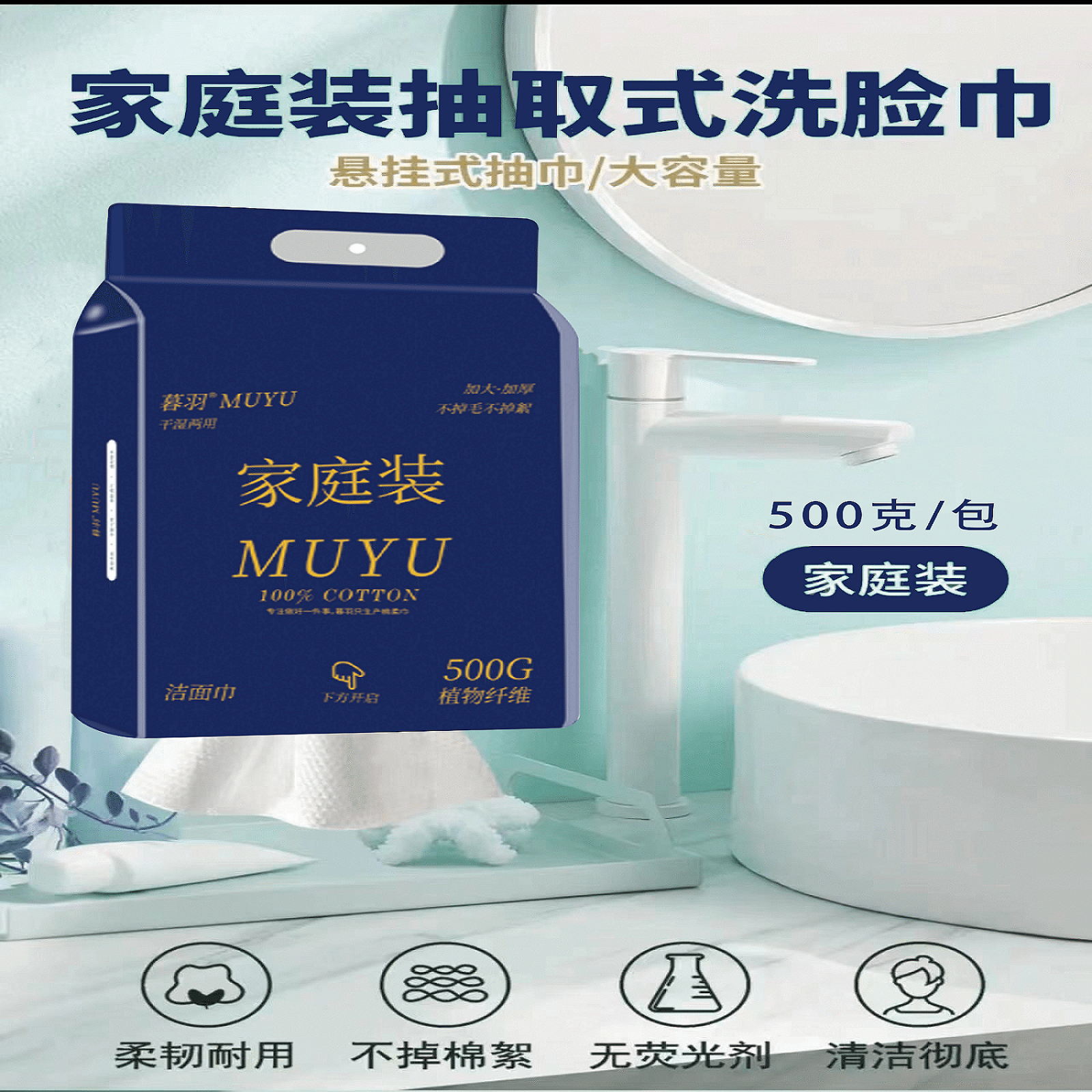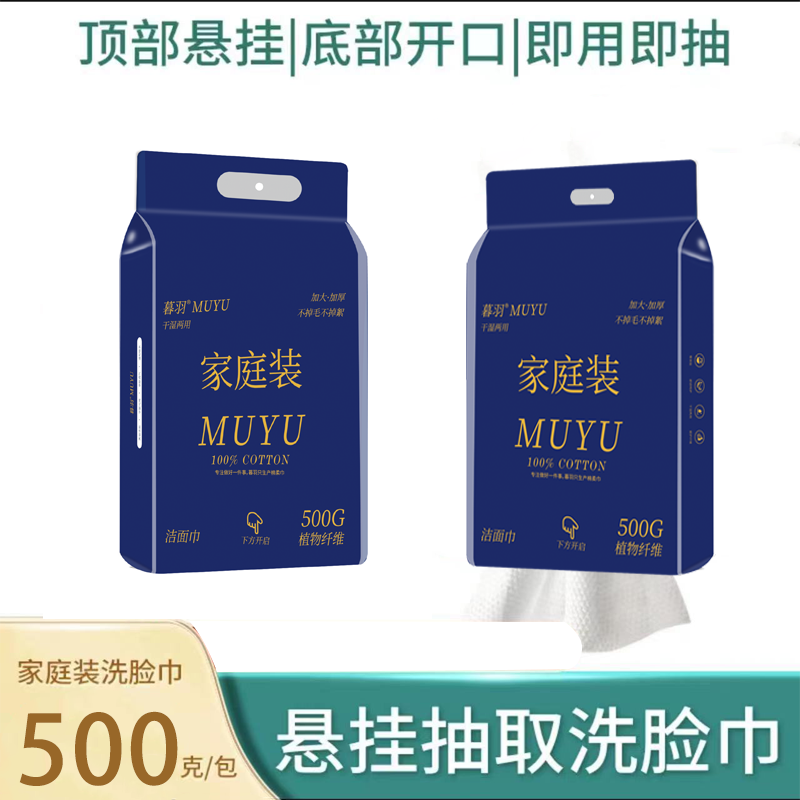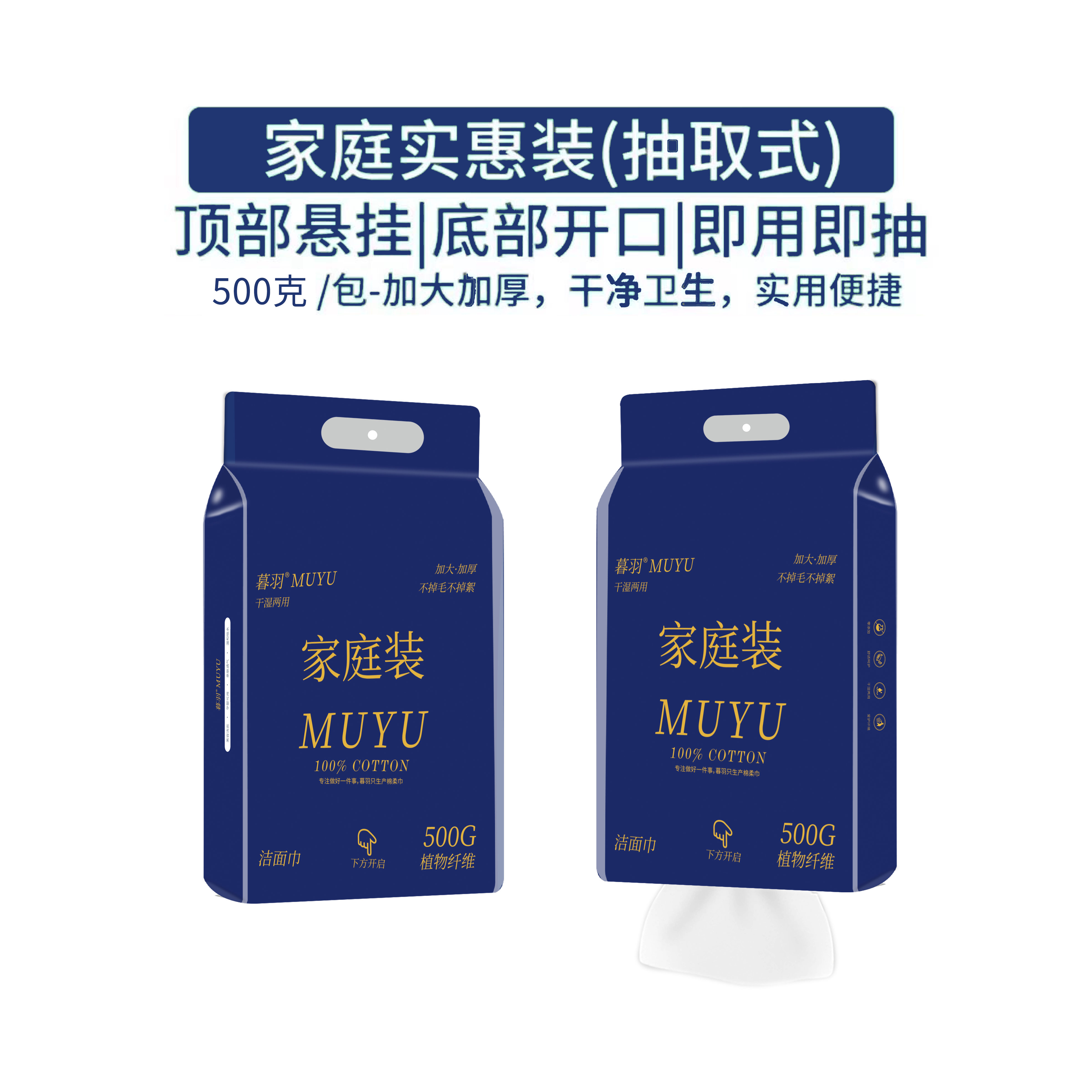 暮羽洗脸巾【拍一发二】500g家庭装悬挂抽取式加大加厚干湿两用