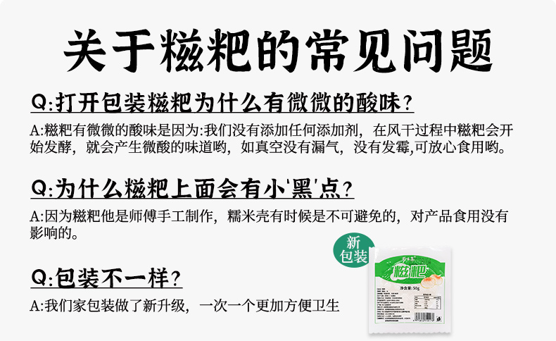 5. 虽然糍粑的包装看起来很卫生,但数量明显不足,与标题描述不符。红糖和豆粉的质量也一般,没有特别出彩的地方。希望卖家能够改进商品描述和实物的一致性。