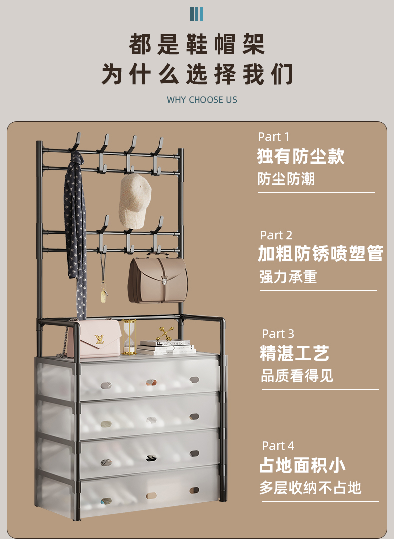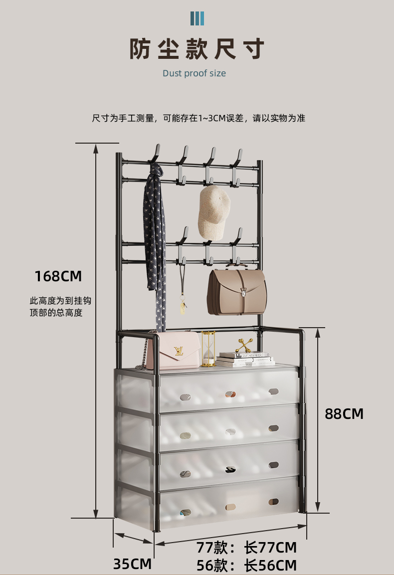 - ¥37.90小号黑丨防尘鞋帽架丨57*35*168cm