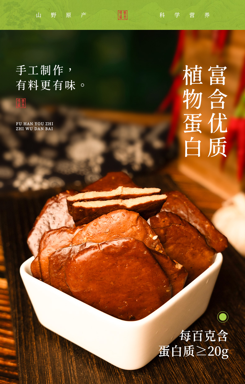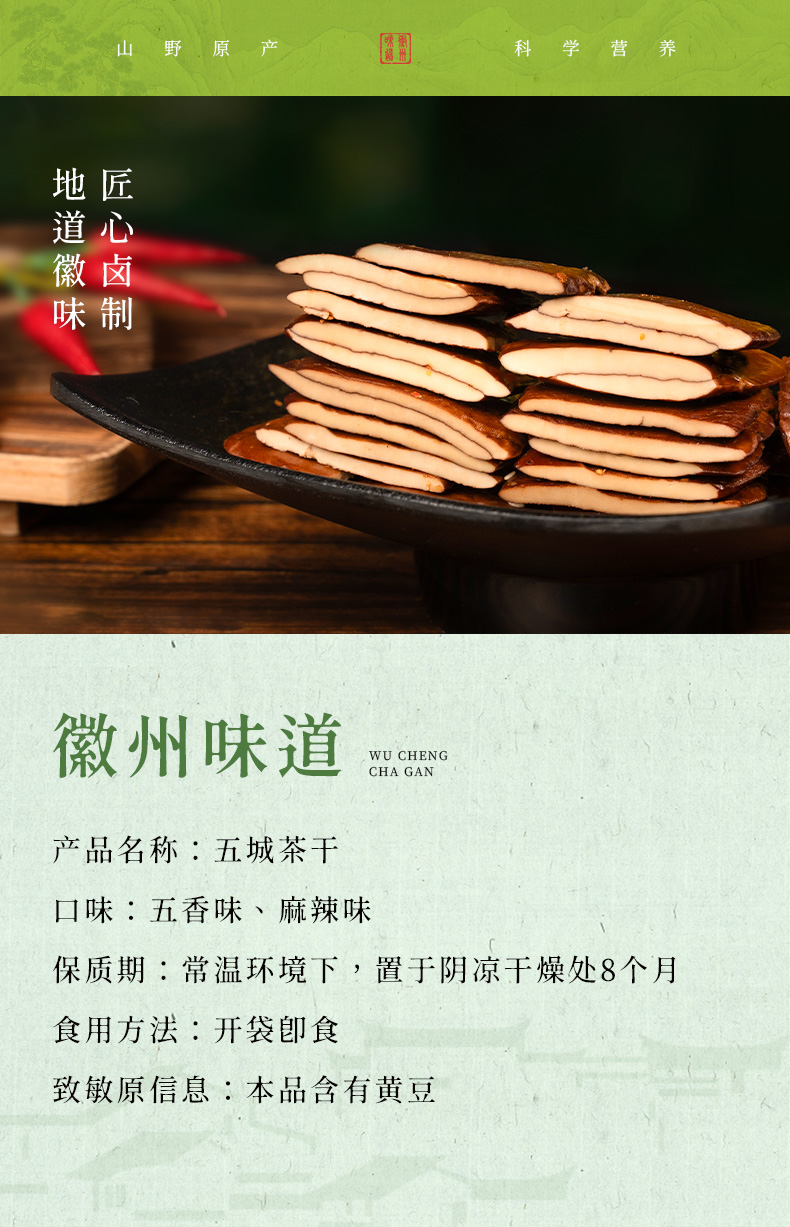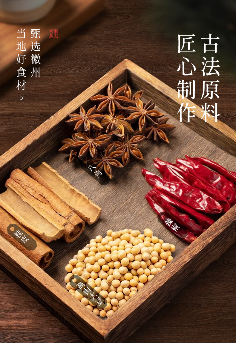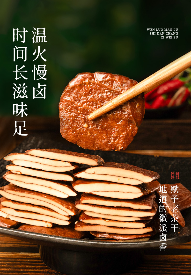 源自黄山五城“中国茶干之乡”,甄选皖北黄豆,豆香浓郁细腻回味无穷,经多道手工艺匠造,每一口都鲜香入味嫩滑有嚼劲