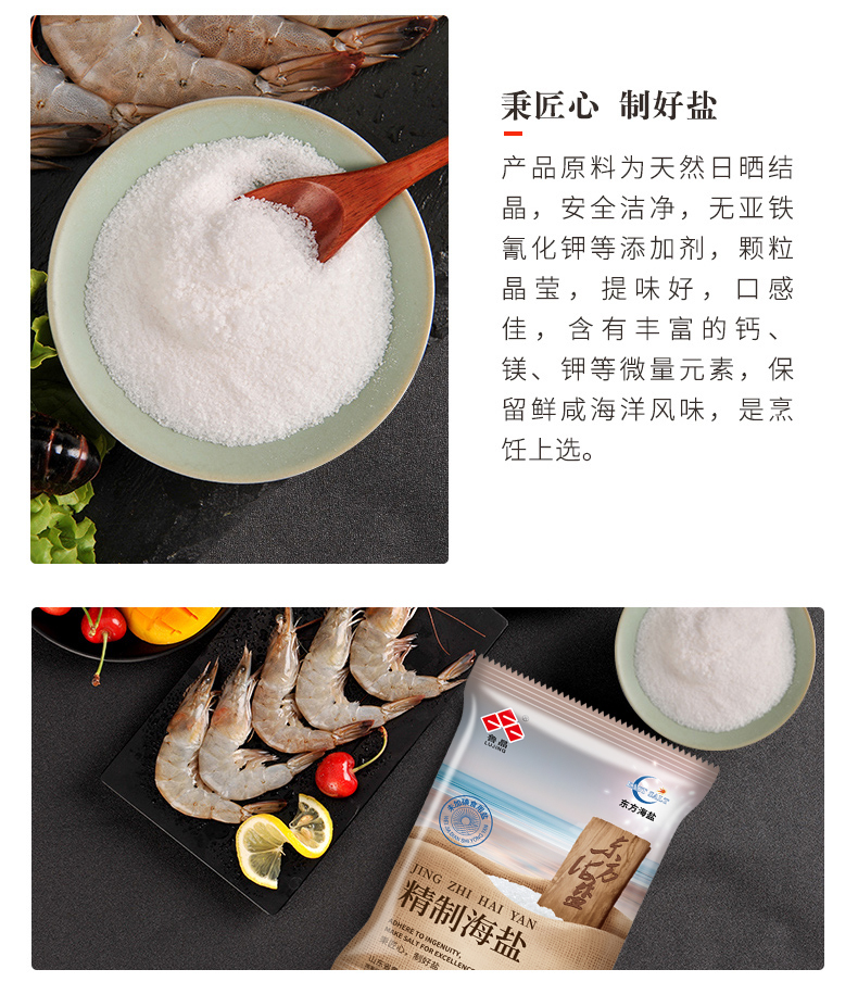 海盐的口感具有咸中带鲜的特点,入味口感好,煲汤、炒菜样样精通,定味提鲜、去腥解腻,品尝舌尖上的海洋鲜味道。