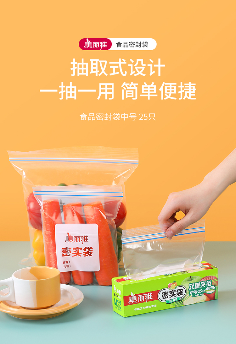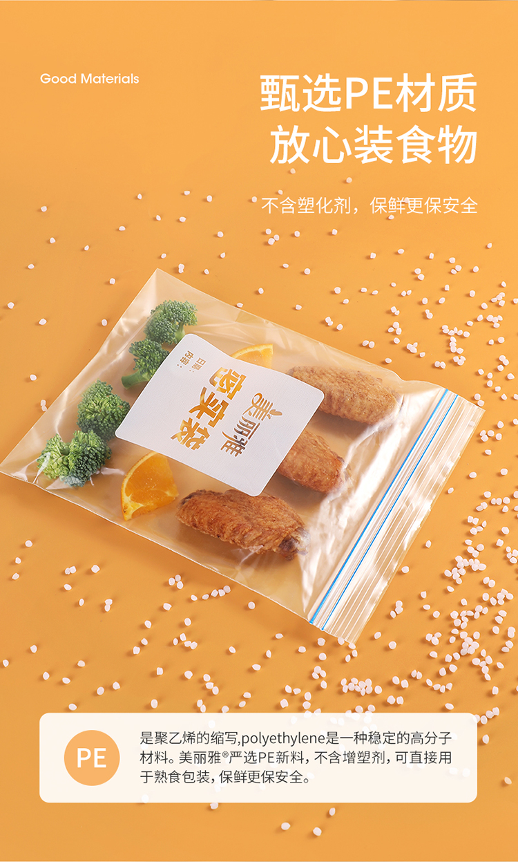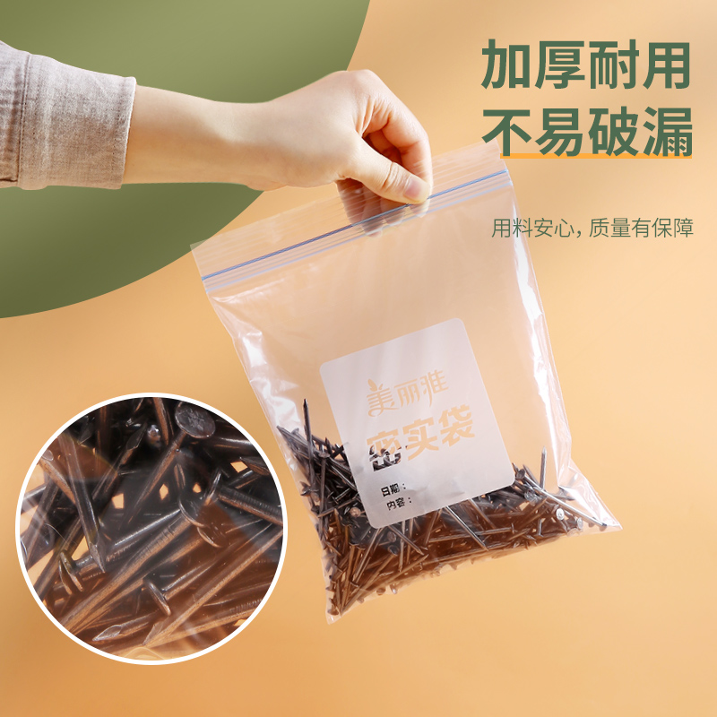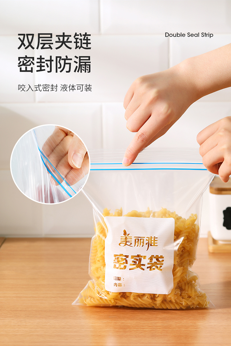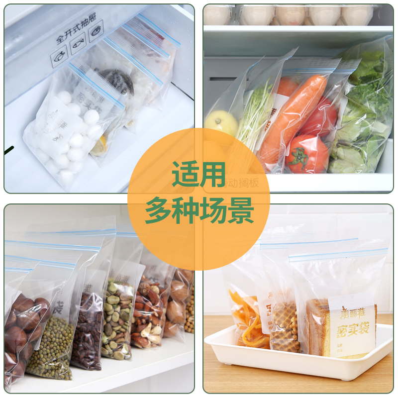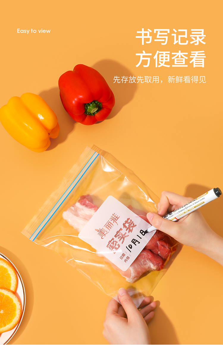 美丽雅的自封保鲜袋是一款性价比很高的产品,无论是用于冰箱冷冻、保鲜,还是用于肉类分装都非常合适。首先,材质是食品级塑料,无毒无味,透明度很高,厚度适中,能够有效地隔绝空气和水分的侵入,延长食品的保质期。其次,颜色是环保白色,清洗起来更方便。
