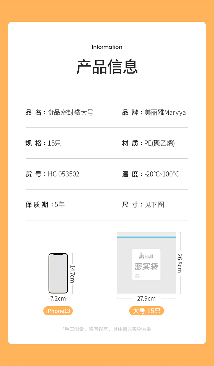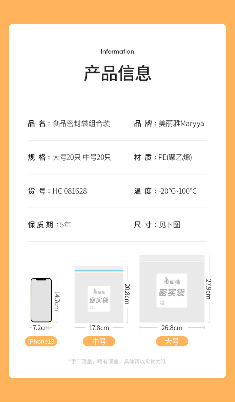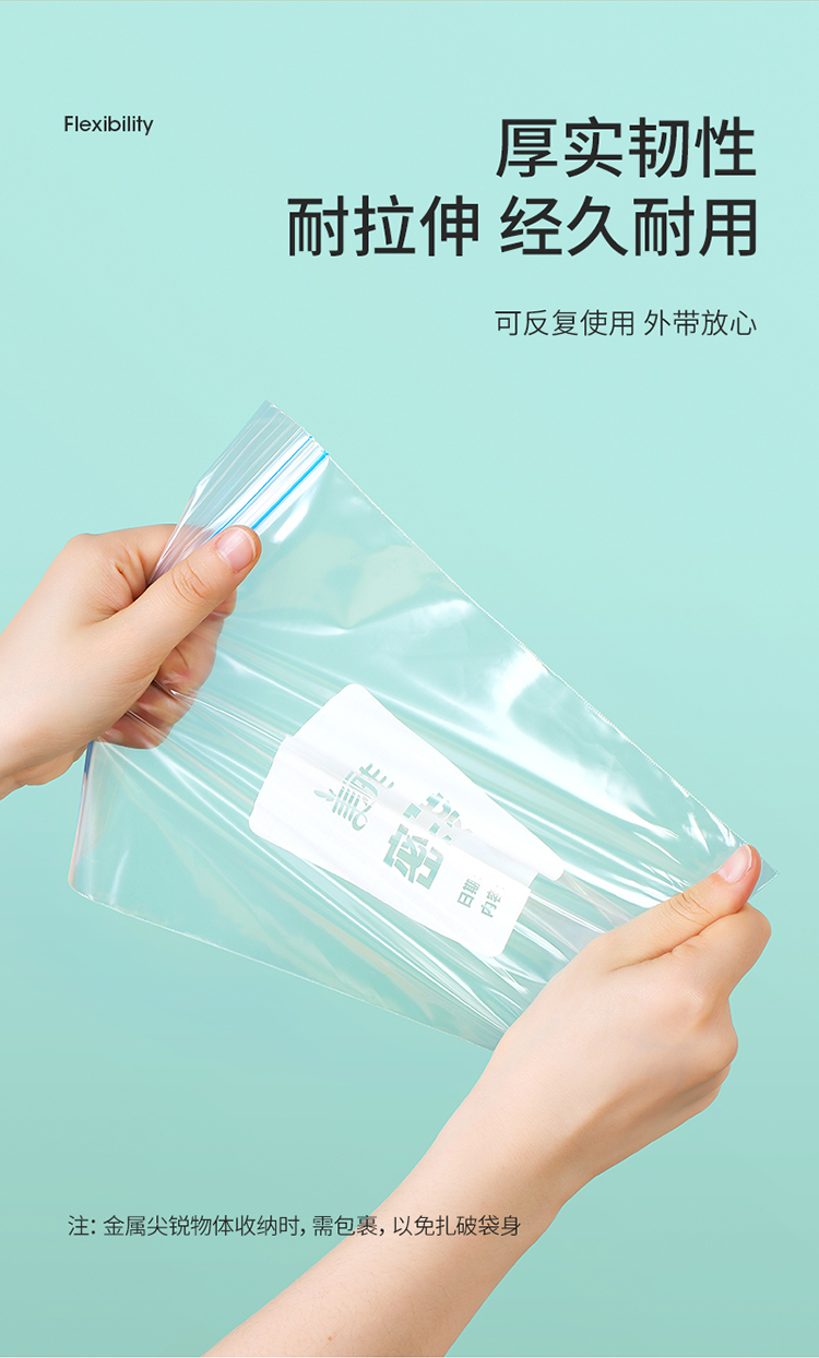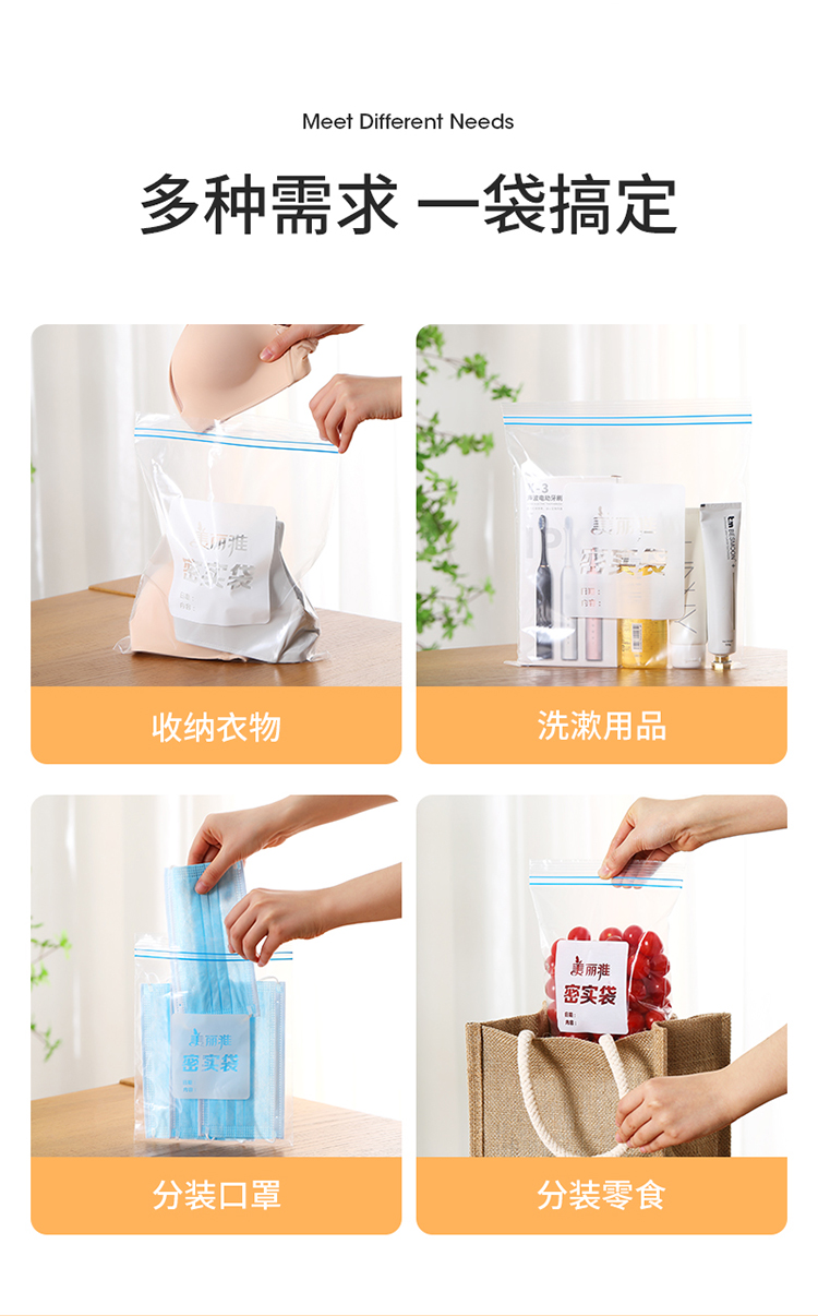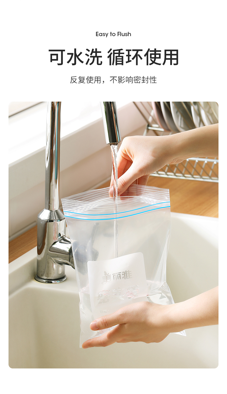 美丽雅的自封保鲜袋是一款性价比很高的产品,无论是用于冰箱冷冻、保鲜,还是用于肉类分装都非常合适。首先,材质是食品级塑料,无毒无味,透明度很高,厚度适中,能够有效地隔绝空气和水分的侵入,延长食品的保质期。其次,颜色是环保白色,清洗起来更方便。