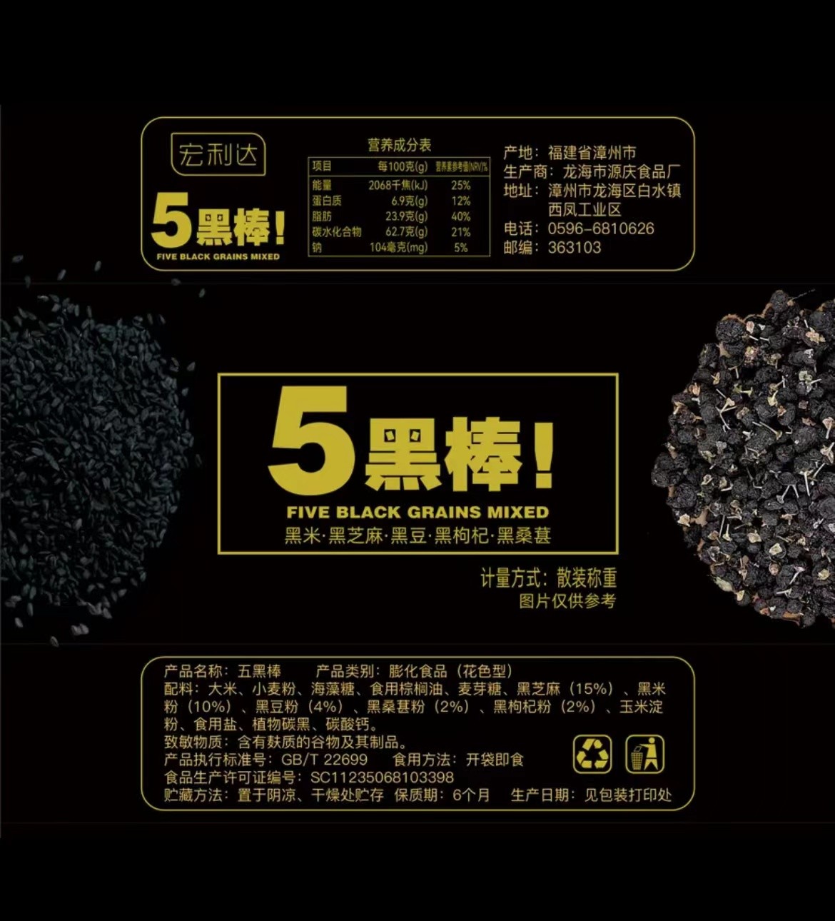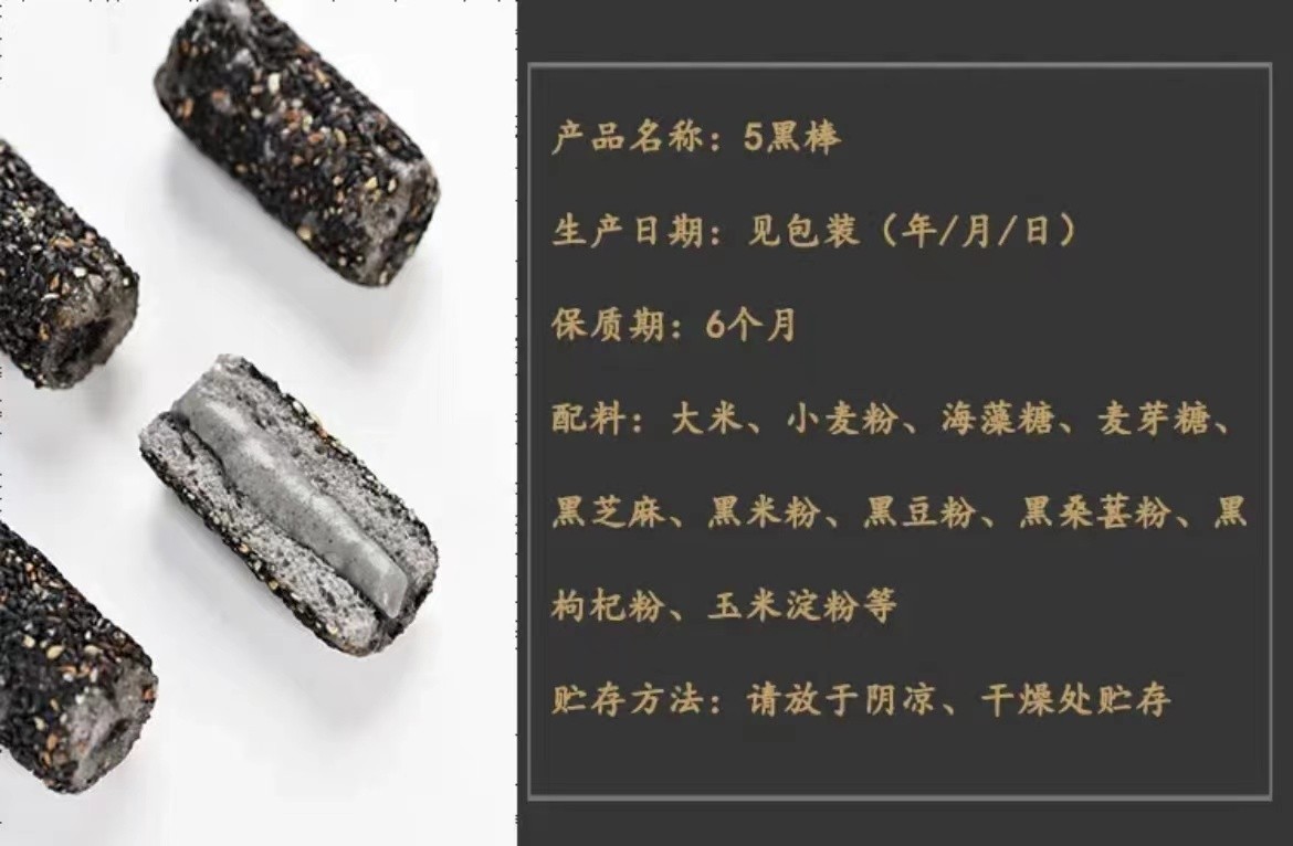 五黑谷物芝麻棒 黑米+黑芝麻+黑桑葚+黑枸杞+黑豆。健康代餐零食