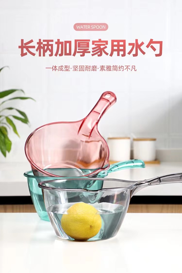 2. 评论:这个水瓢真的很不错,加厚的设计让它在厨房里使用起来非常方便,而且颜色也很漂亮,非常适合家用。
