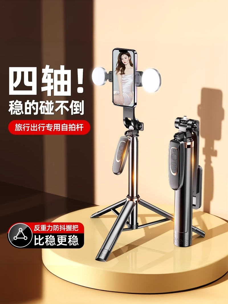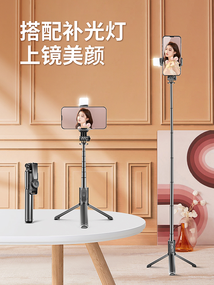 - ¥31.00【一体式自拍杆三脚架】黑色+蓝牙拍照器+美颜灯
