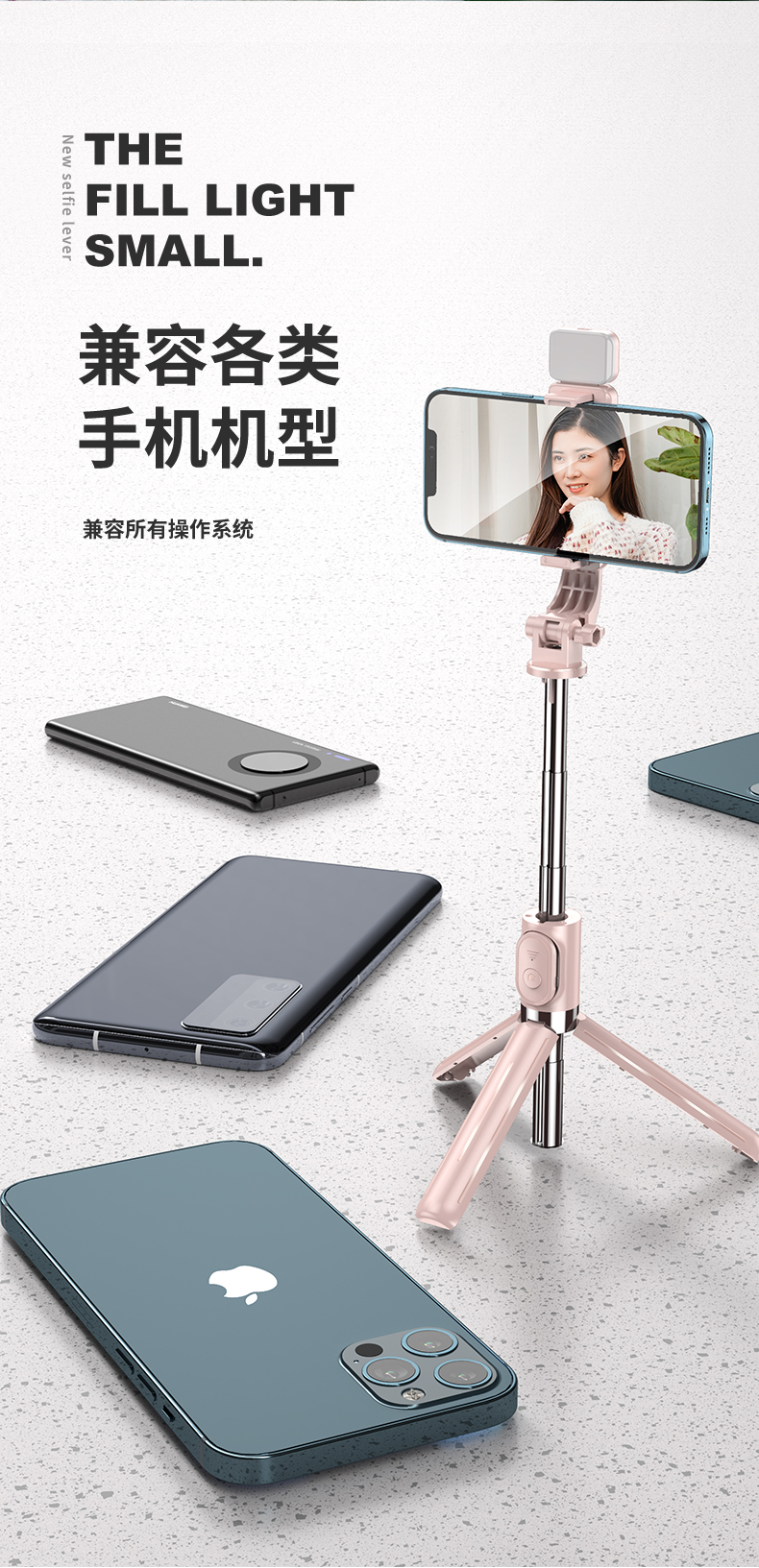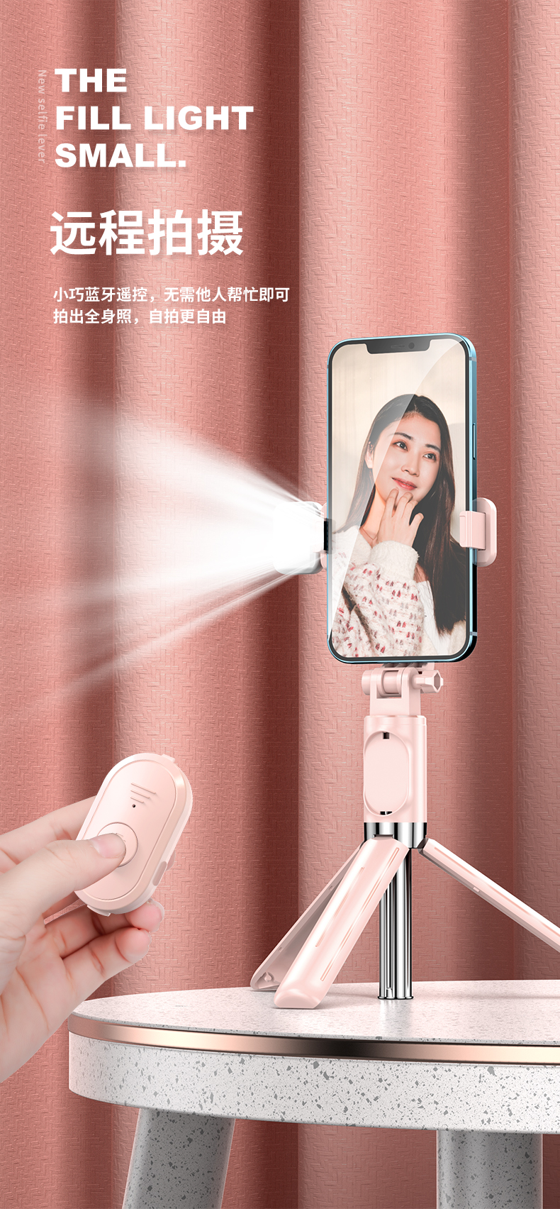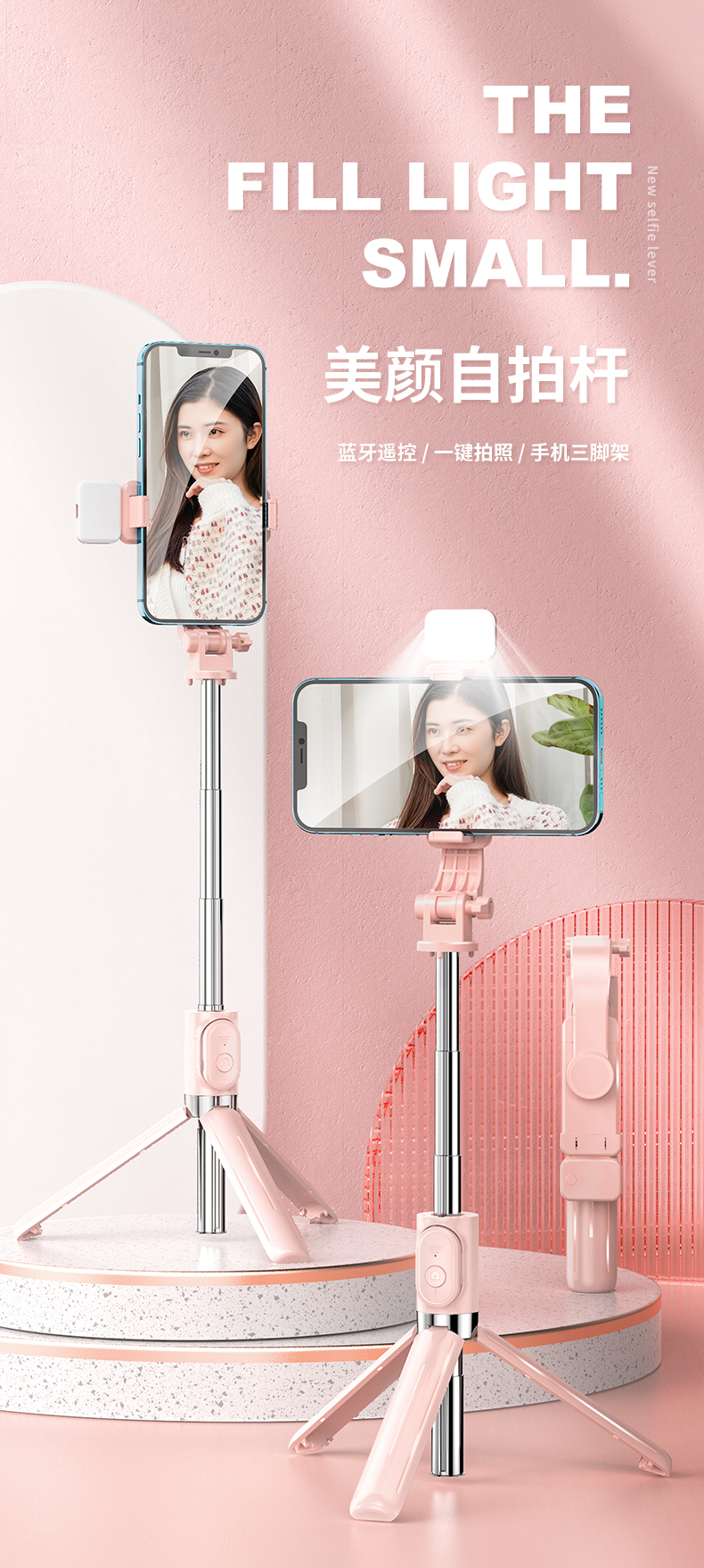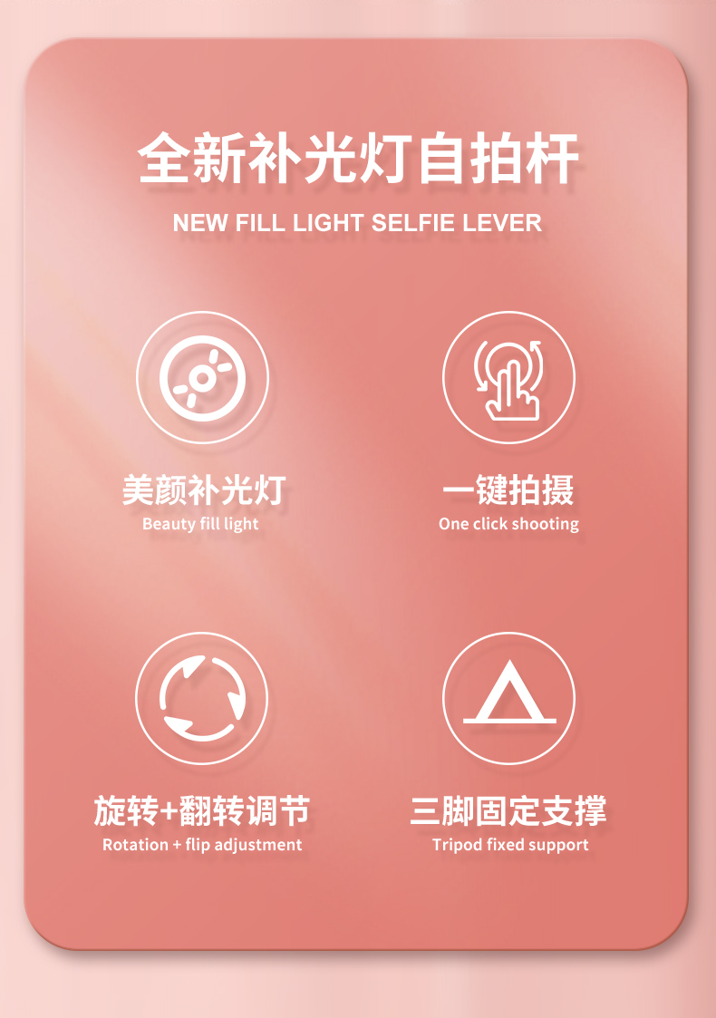 - ¥31.00【一体式自拍杆三脚架】白色+蓝牙拍照器+美颜灯