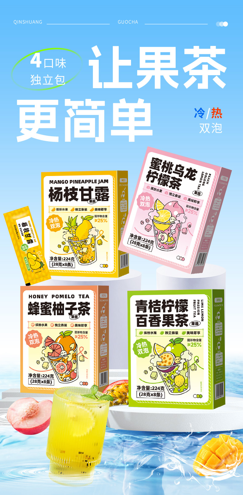 今天我想来谈谈这款雨子坊的果茶,其实我一直都很喜欢喝茶,但一般的茶叶又太浓,我总是需要自己在家调试,但是这款果茶真的是完美的解决了我的困扰。四种口味,无论你是柠檬控还是柚子控,蜜桃乌龙还是杨枝甘露,都可以在这款产品中找到满足你的口味。