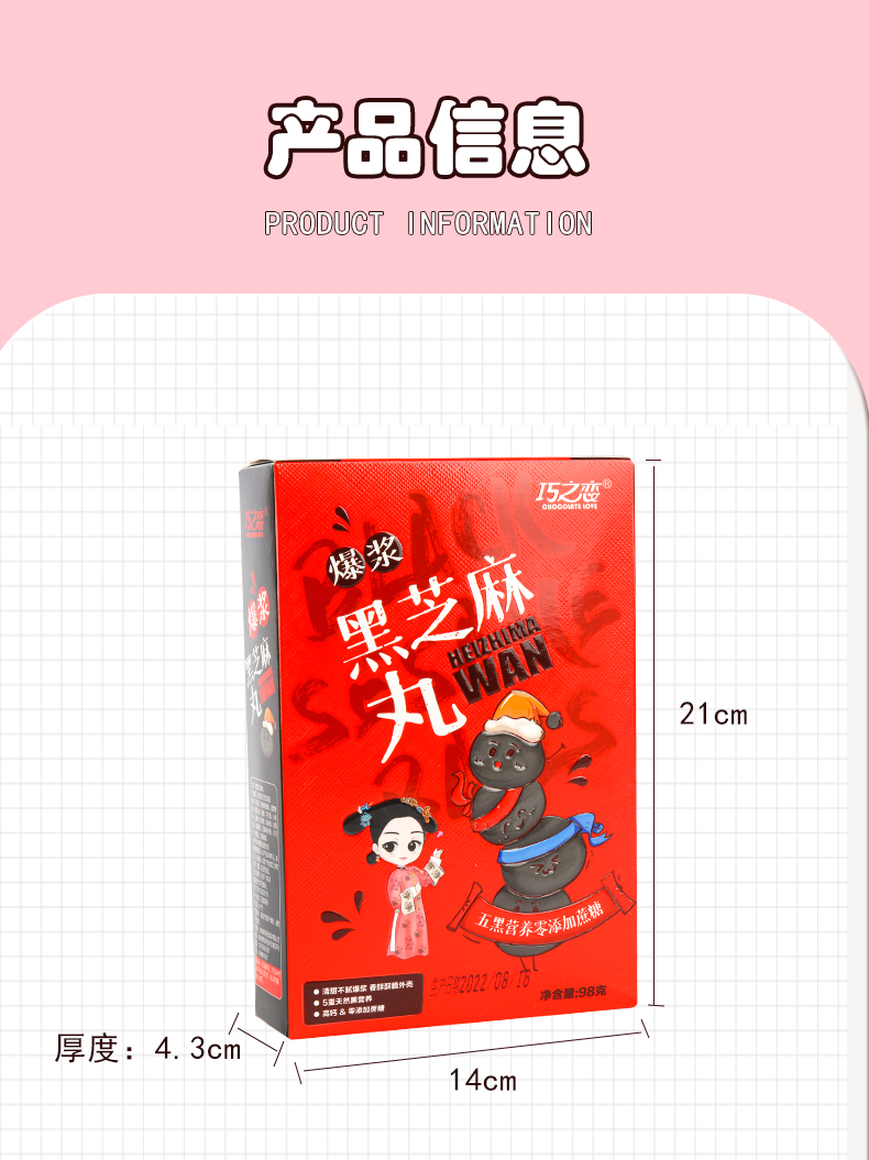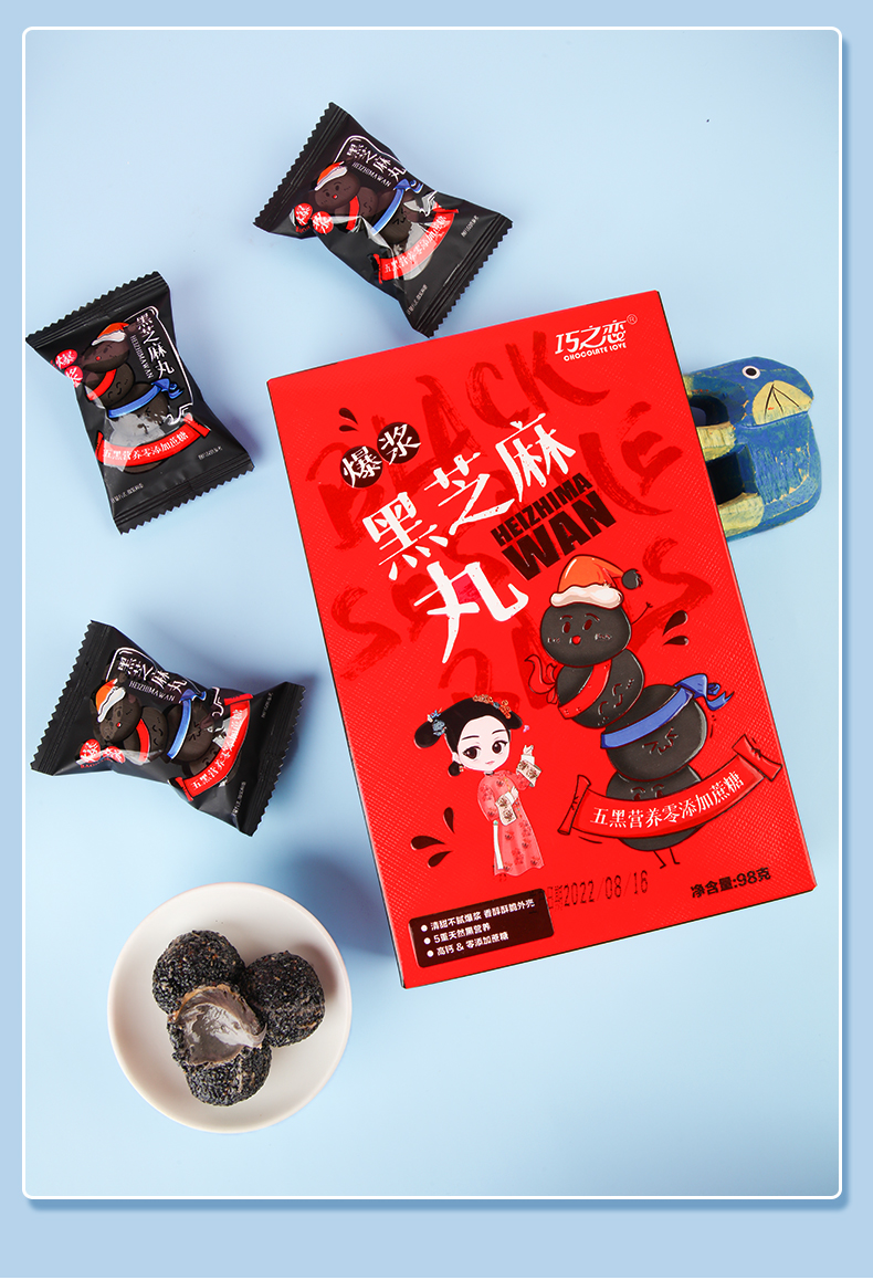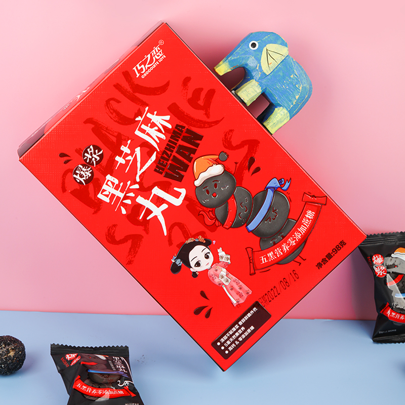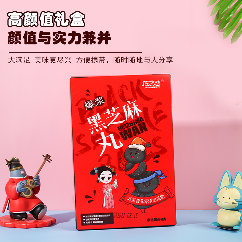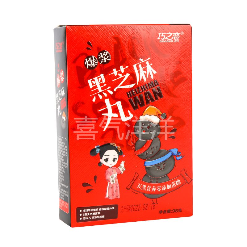 巧之恋爆浆黑芝麻丸98g/盒追剧必备网红休闲小零食纯可可巧克力