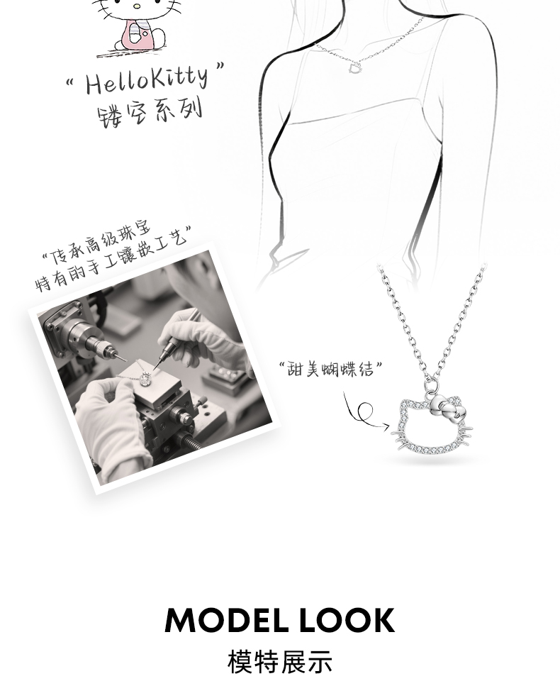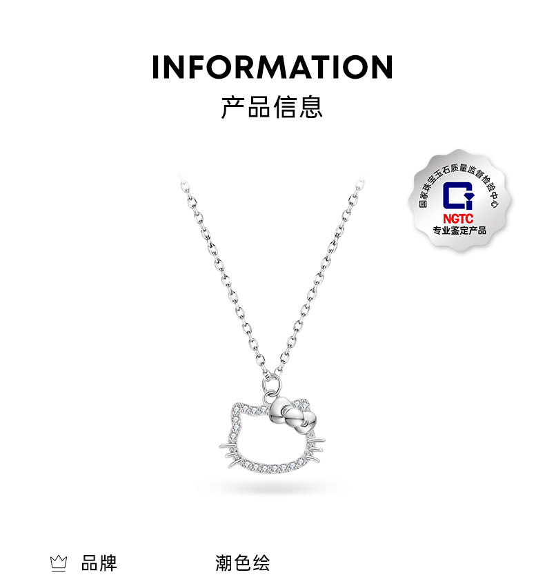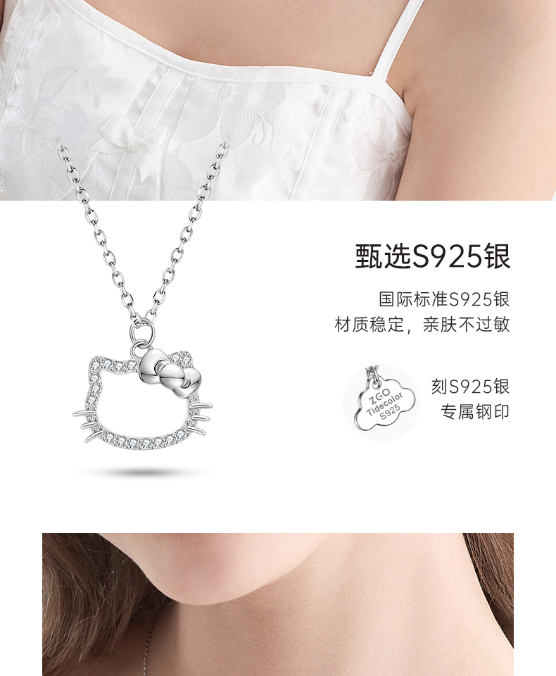 潮色绘 坠链均925银合成锆石 hellokitty轻奢小众送女友生日礼物