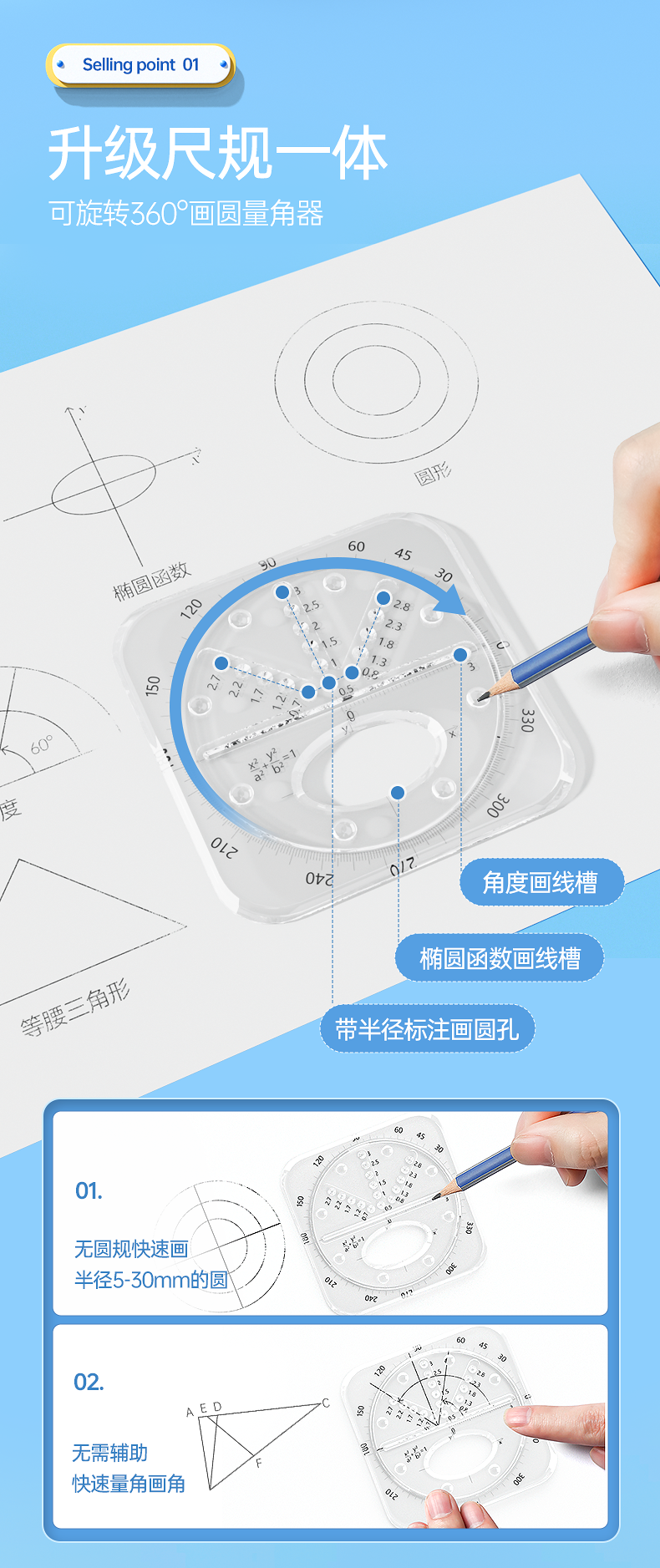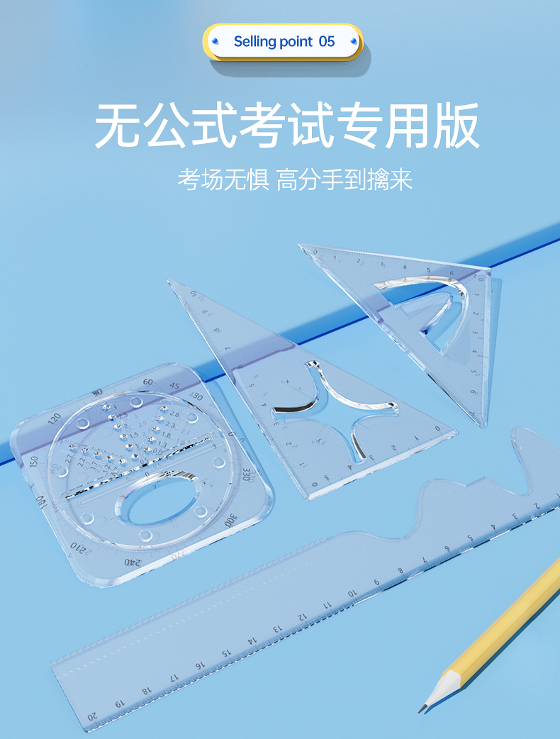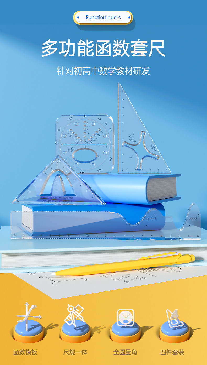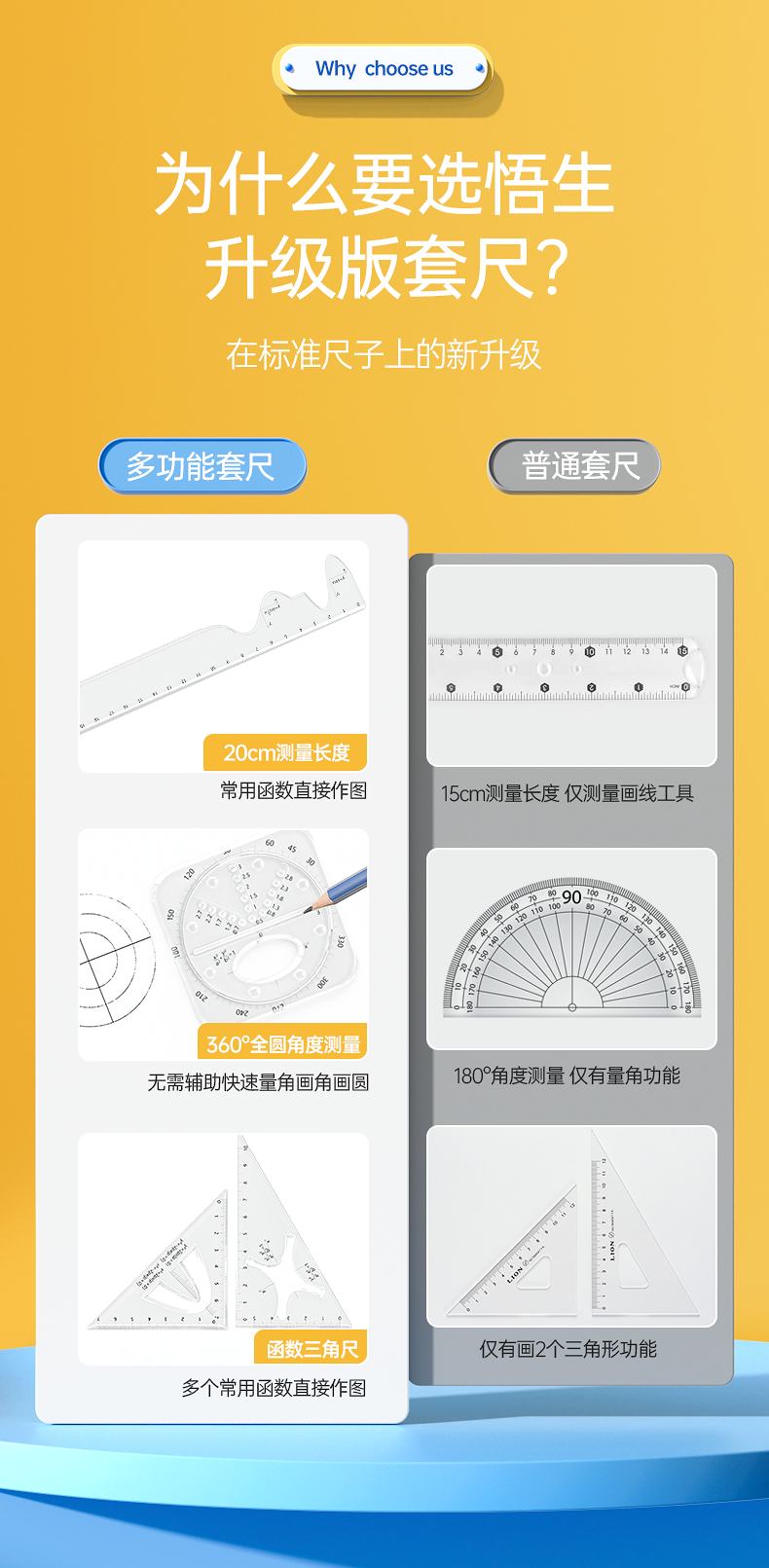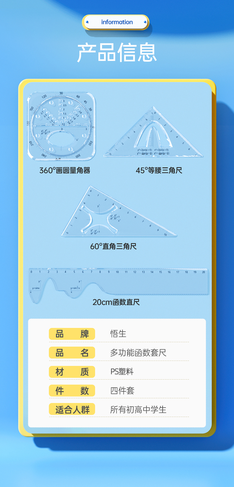 开学季好物悟生函数尺绘图尺子四件套初高中学生三角板直尺套装