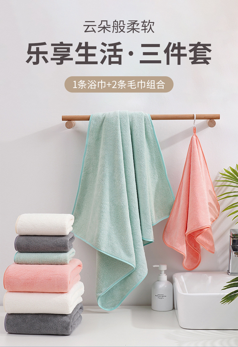 【网红款毛巾浴巾三件套珊瑚绒洗澡毛巾浴巾毛巾三件套学生浴巾套装】 买家评论: 1. 颜色很吸引人,看起来非常舒适,材质也很柔软,性价比很高。