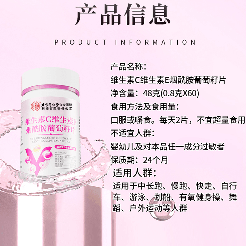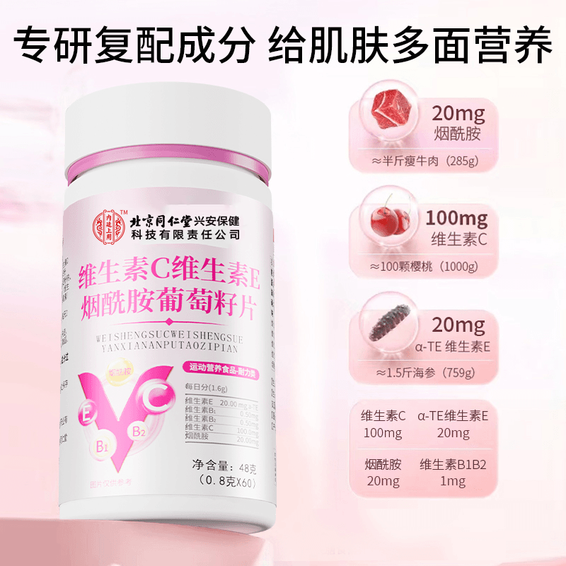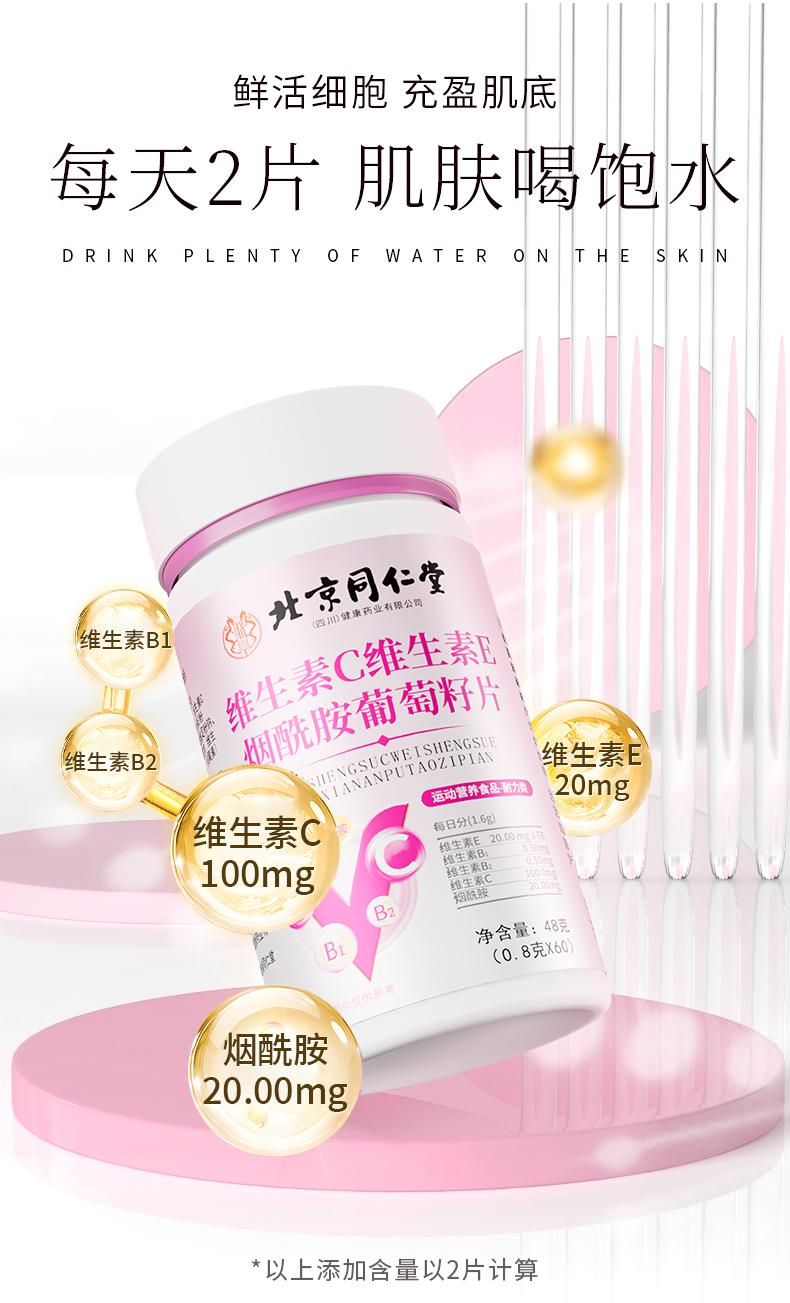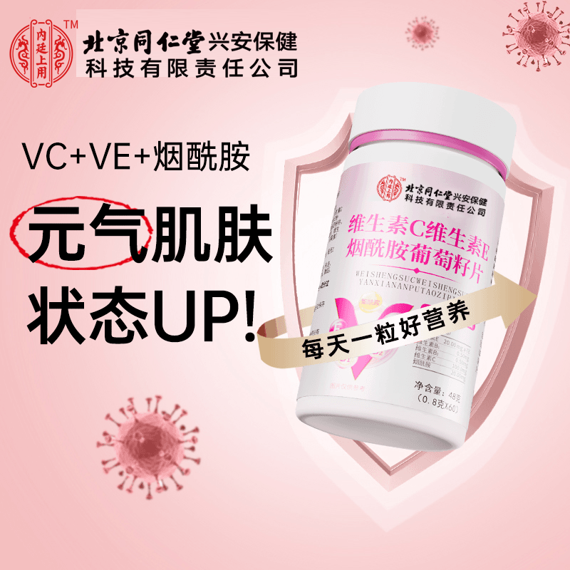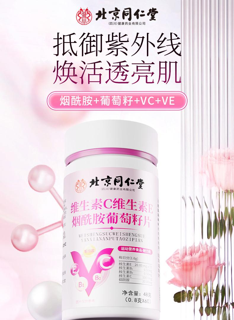北京同仁堂内廷上用维生素C维生素E烟酰胺片VC运动营养咀嚼片60片