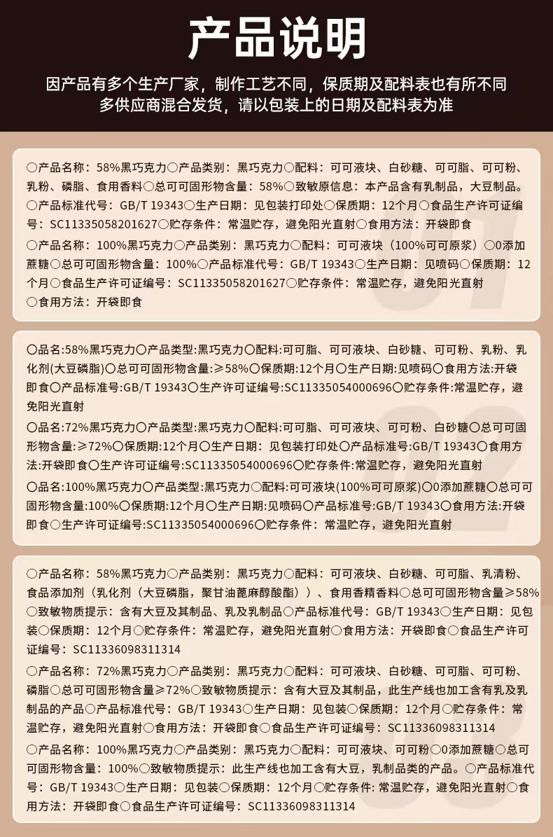 - ¥29.8058%黑巧【含糖甜苦适中】,100g*5盒【约125片】