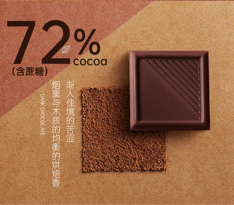 - ¥8.9072%黑巧【含糖-偏苦微甜】,100g*1盒【约25片】