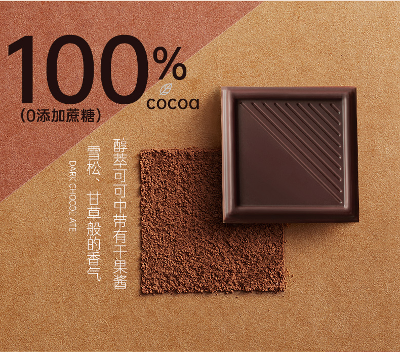100%每日纯黑巧克力,纯可可脂,低糖 零食