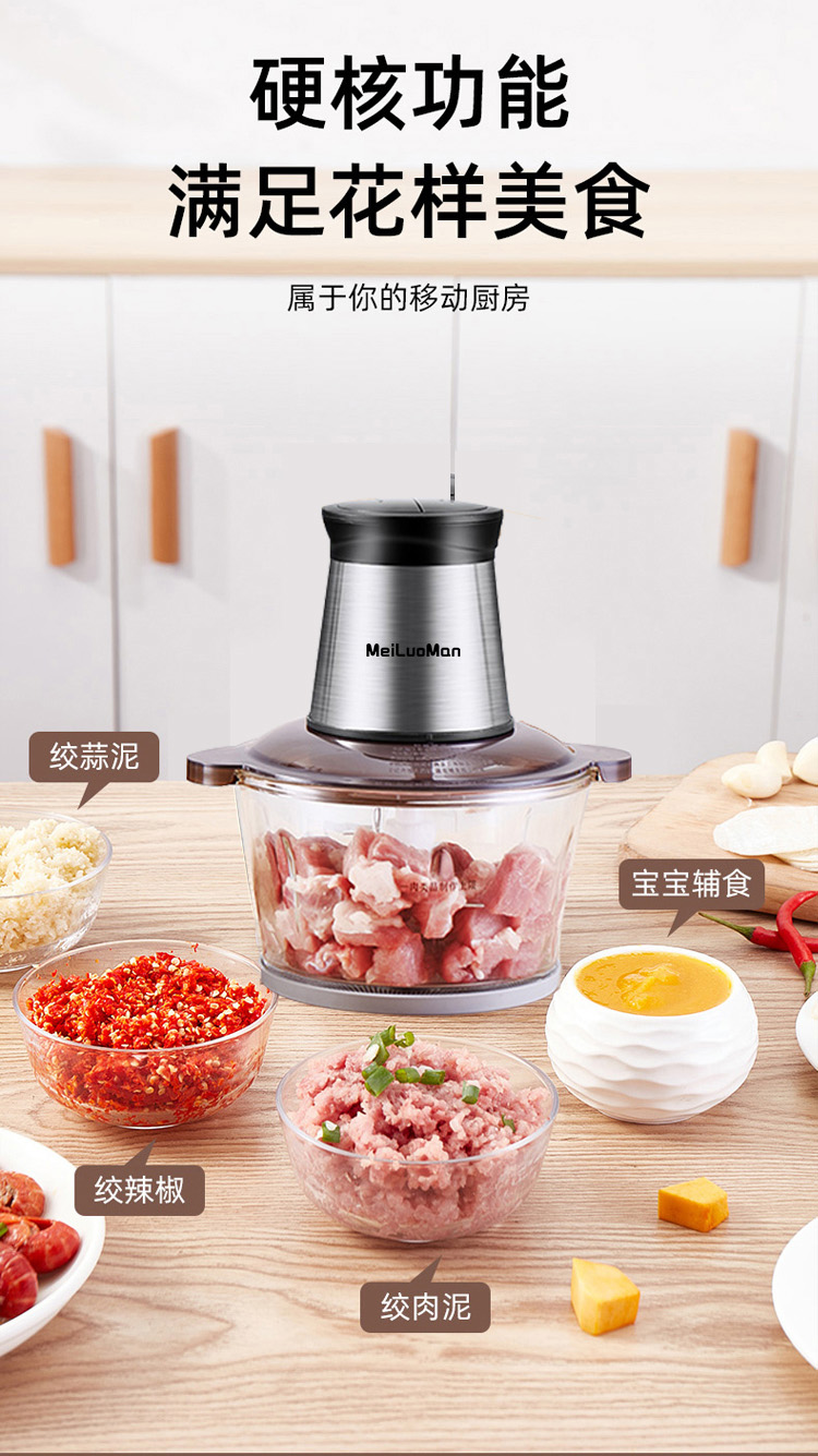 【高货品质】美罗漫meiluoman绞肉机家用电动玻璃碗打肉馅双刀款