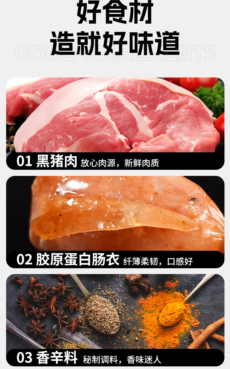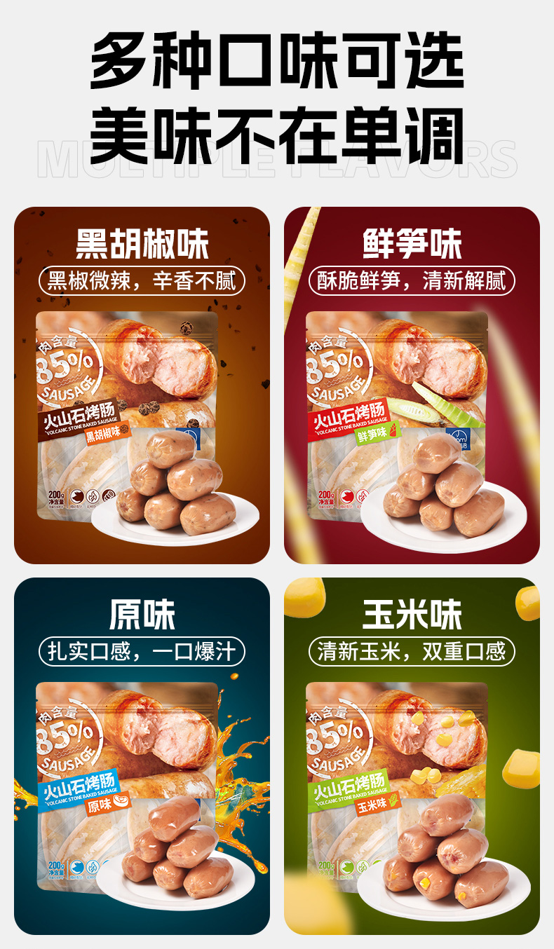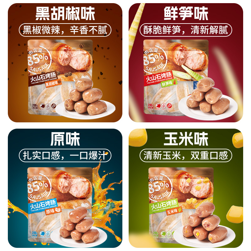 - ¥29.90 火山石烤肠三种口味各一袋,200g