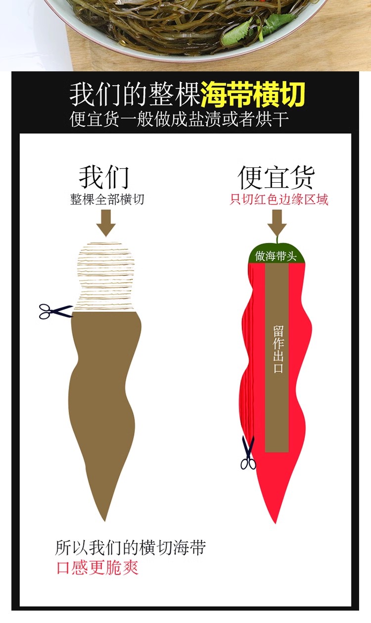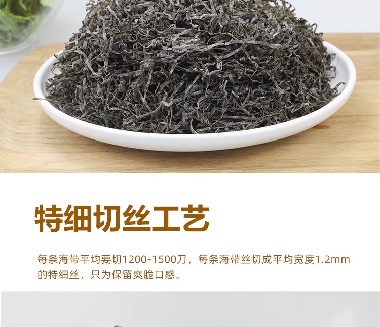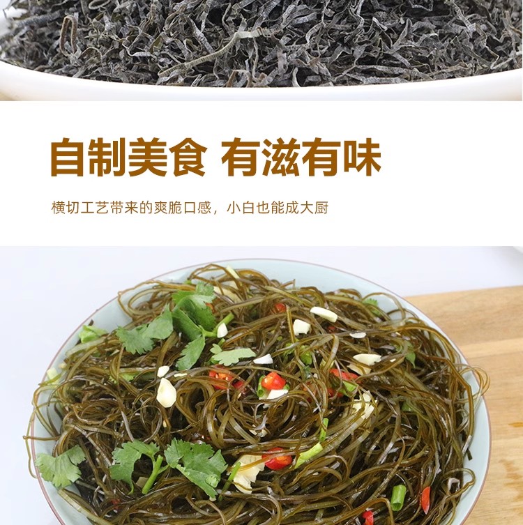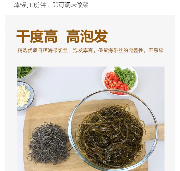 只需一碗水就能泡发一碗海带,泡发后的海带口感非常脆爽,未经漂烫处理的海带。保留了海带的原始风味,吃起来有一种甘露醇和褐藻胶的清香