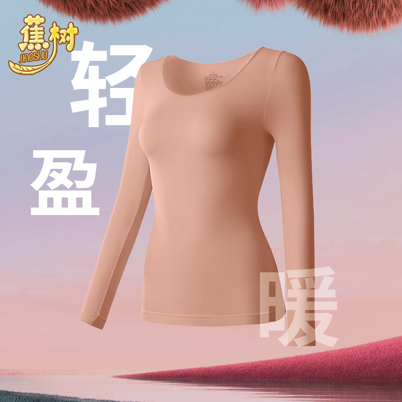 蕉树 玻尿酸润肤超薄隐形打底修身长袖圆领无痕女士美肤衣6626