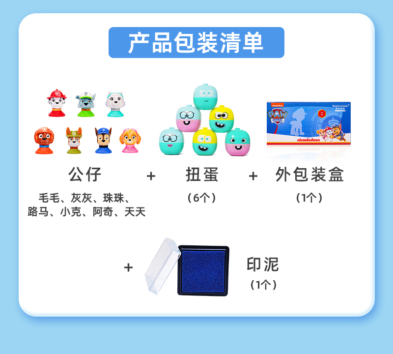 7只(阿奇,珠珠,毛毛,灰灰,路马,小克,加赠天天和印泥)