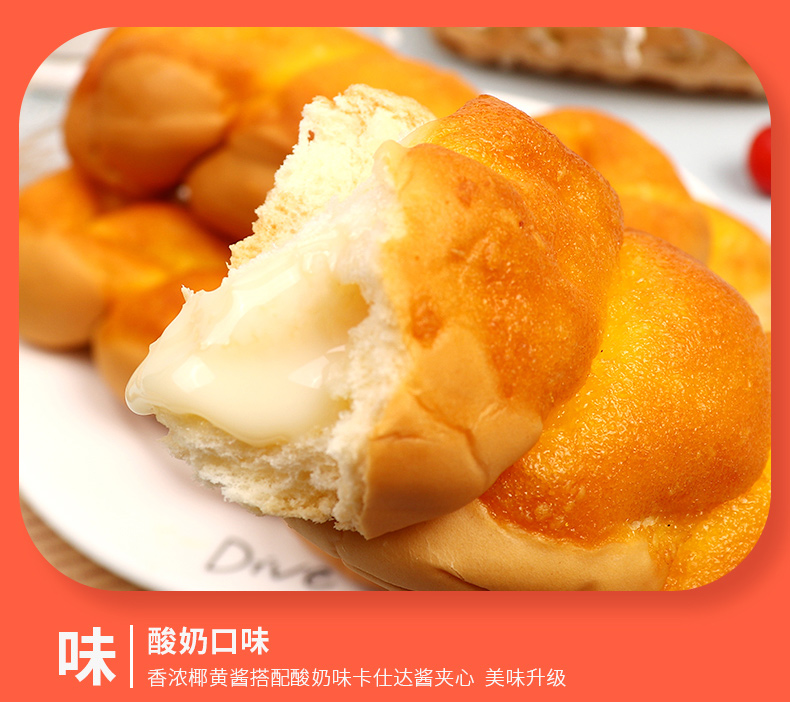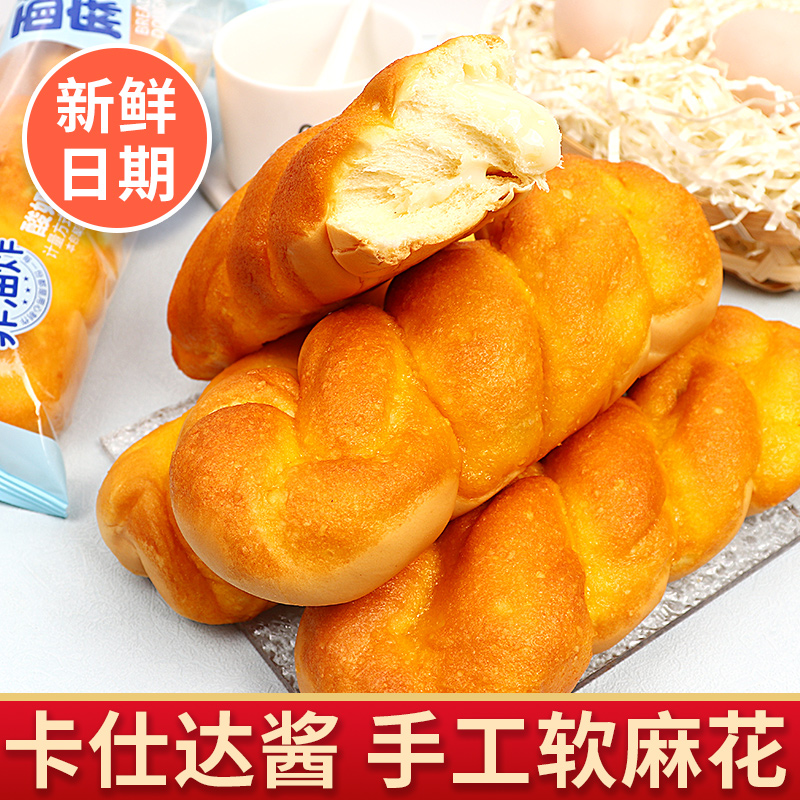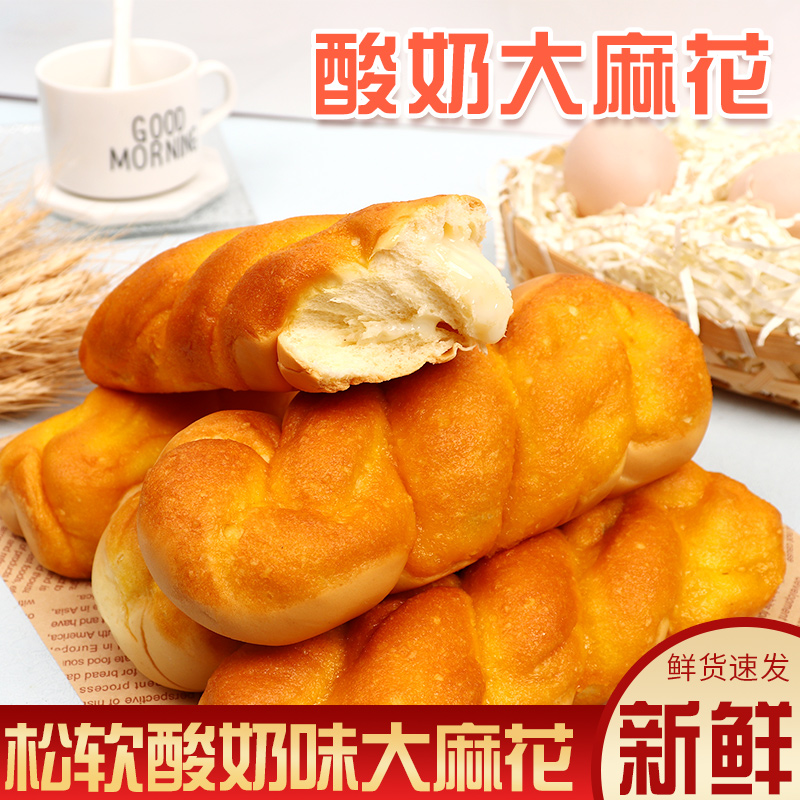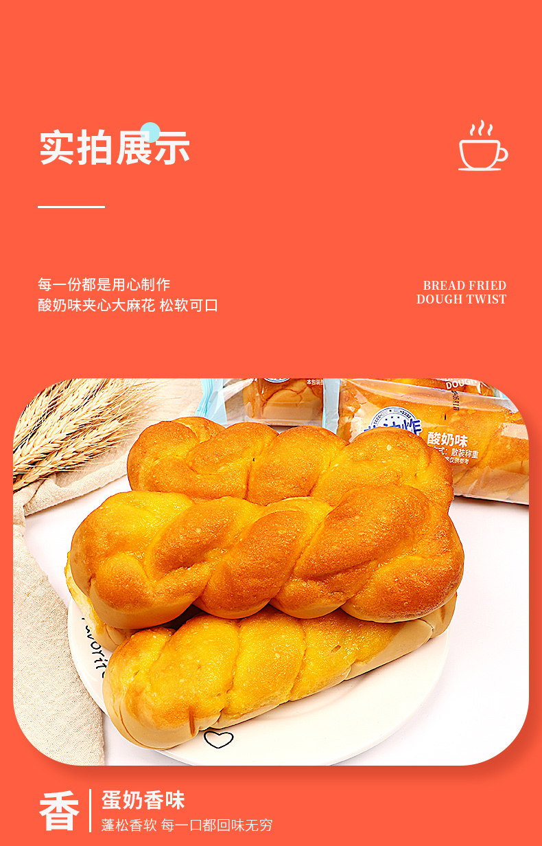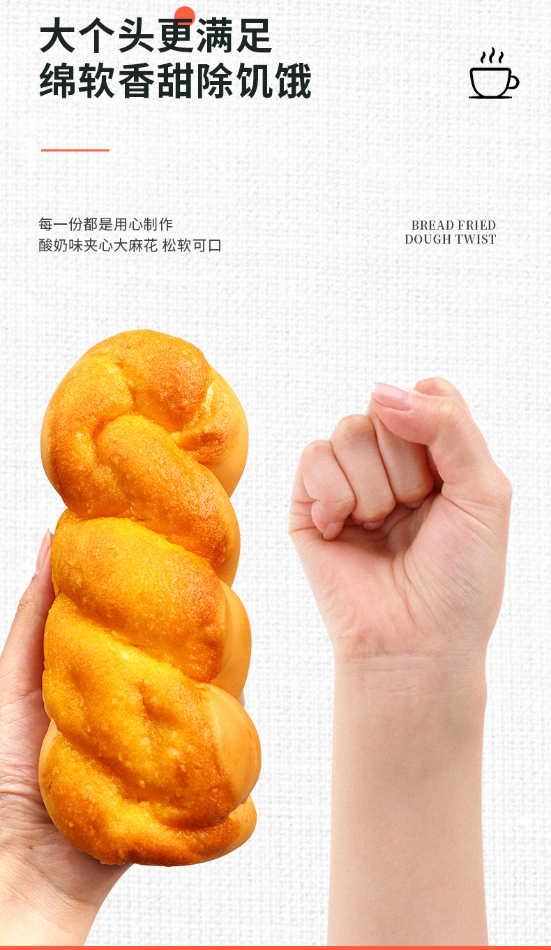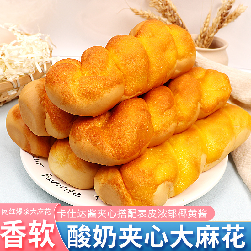 2. 这款酸奶大麻花夹心软面包早餐办公室休闲零食品的口味非常好,非常喜欢这种口感的面包。