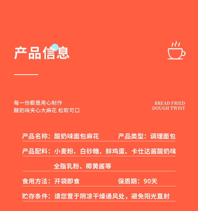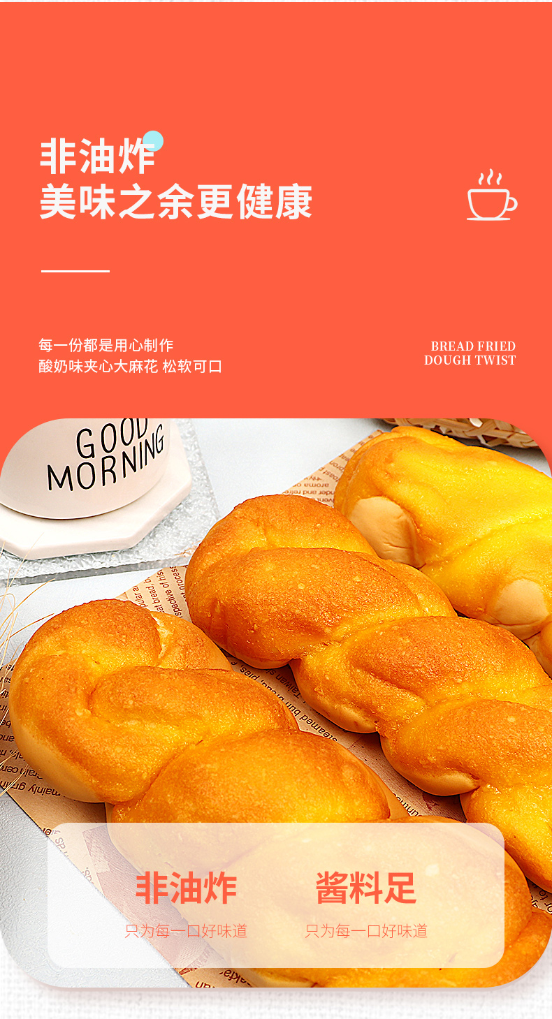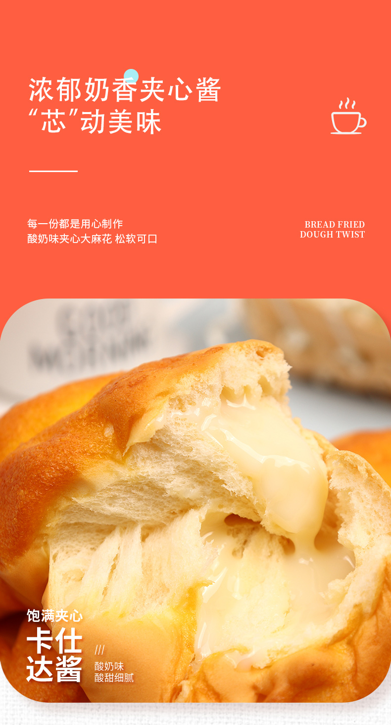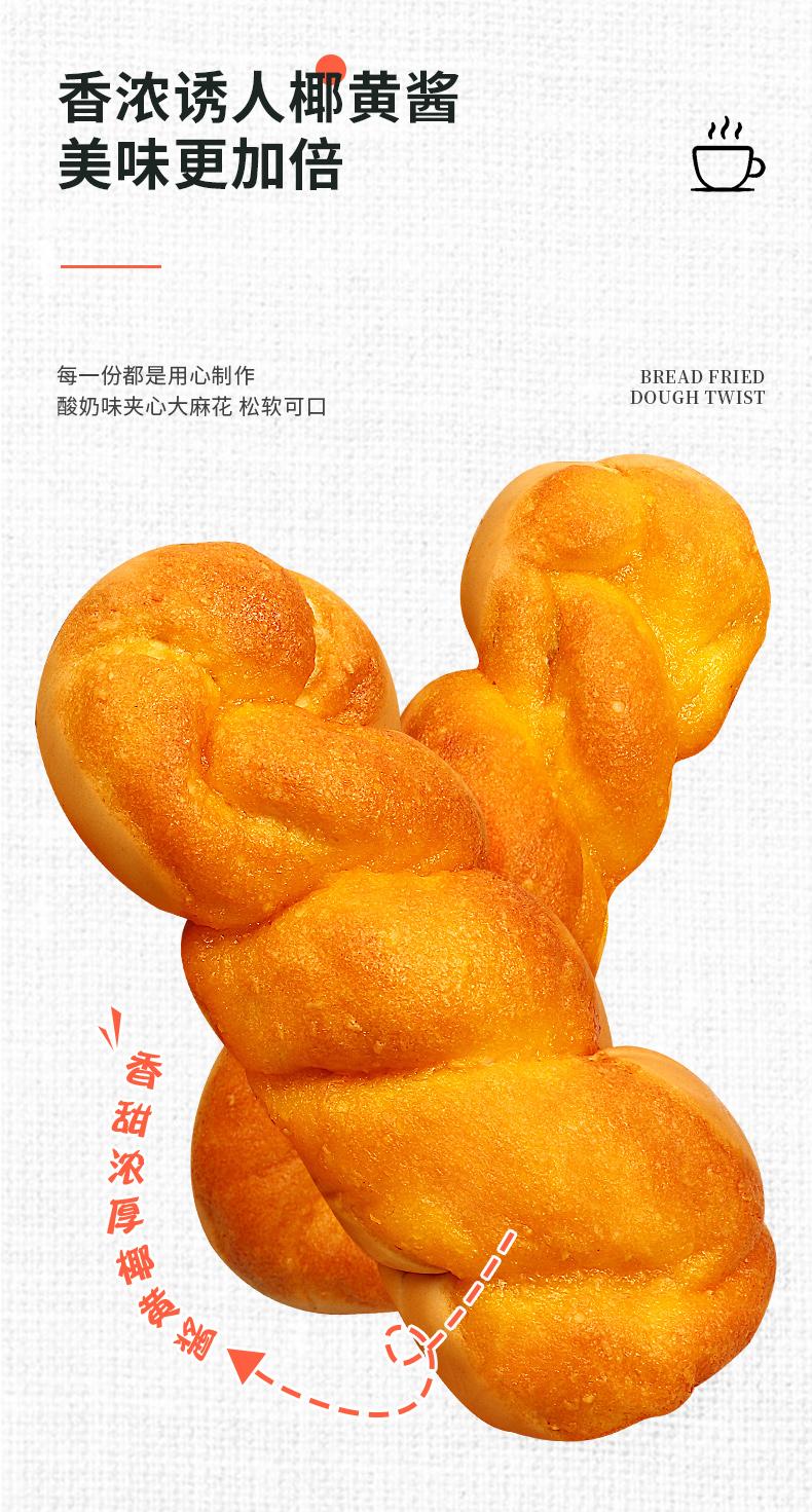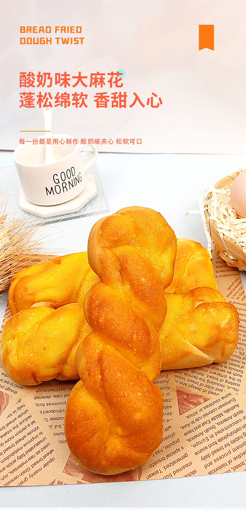 2. 这款酸奶大麻花夹心软面包早餐办公室休闲零食品的口味非常好,非常喜欢这种口感的面包。
