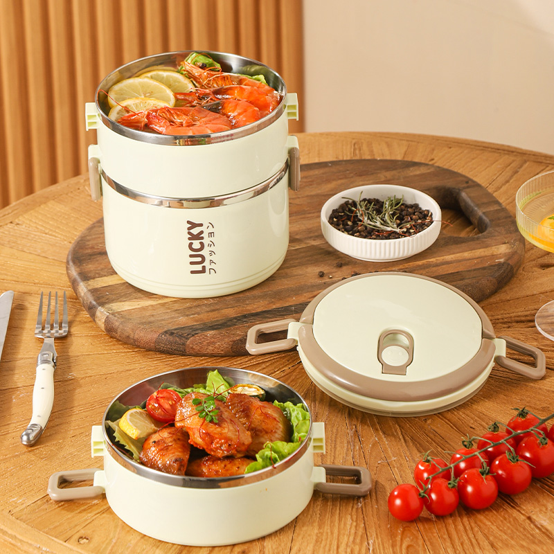 2. **便携性**:双层设计使得饭盒重量减轻,方便携带。手提设计更是方便提着饭盒上下班。