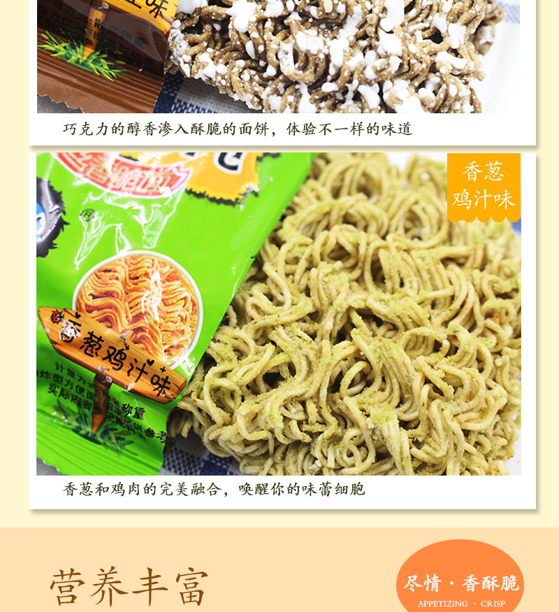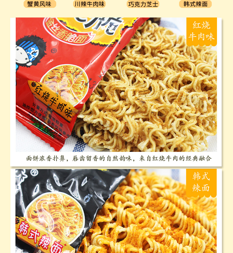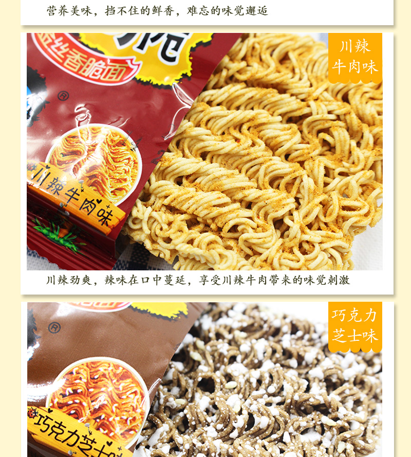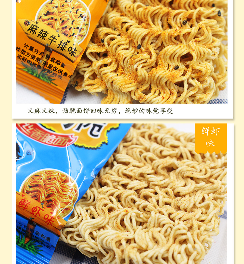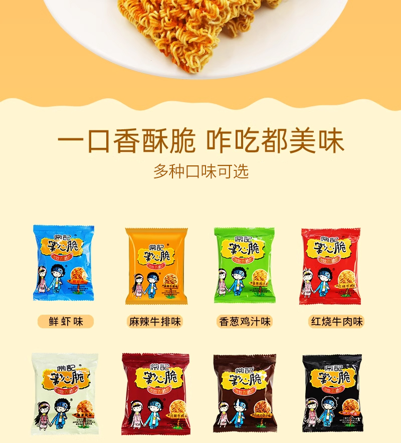 这款干脆面口感脆爽,味道适中,非常适合夜宵或充饥时食用。他们称赞了商品的小包装设计,表示携带方便,随时可以享用。此外,一些买家特别喜欢混合口味的选择,认为可以尝到多种口味,非常有趣。 对于价格,大多数买家认为该商品性价比很高,给出的价格与质量相符。他们表示,虽然这款干脆面不是市场上最贵的,但它的口感和味道确实值得这个价格。