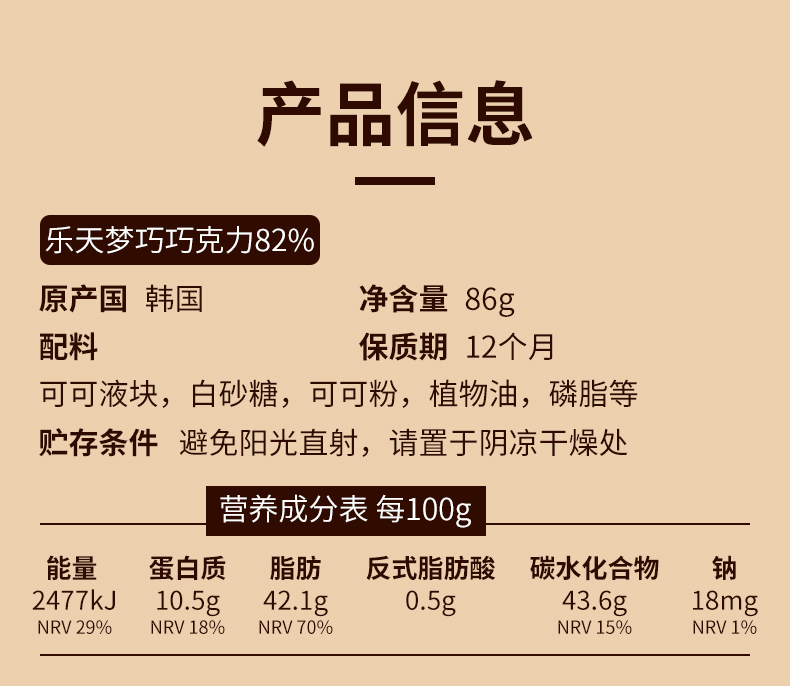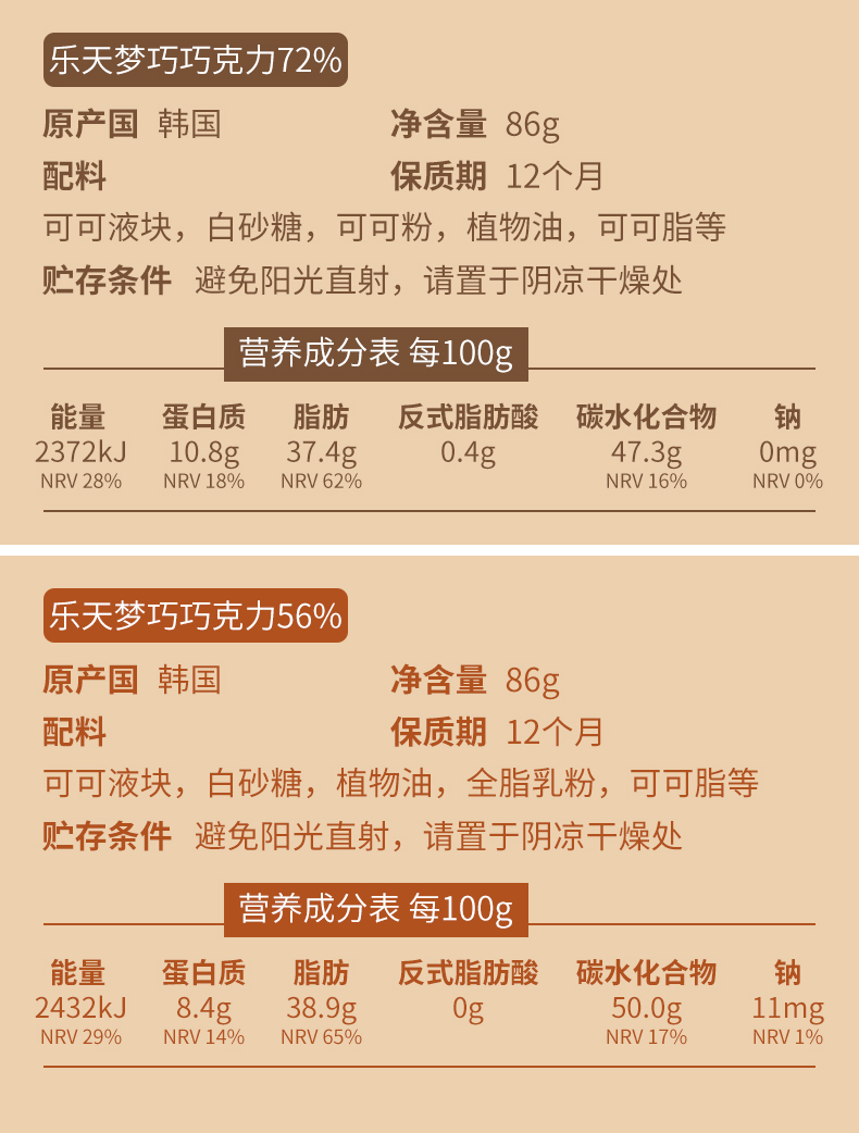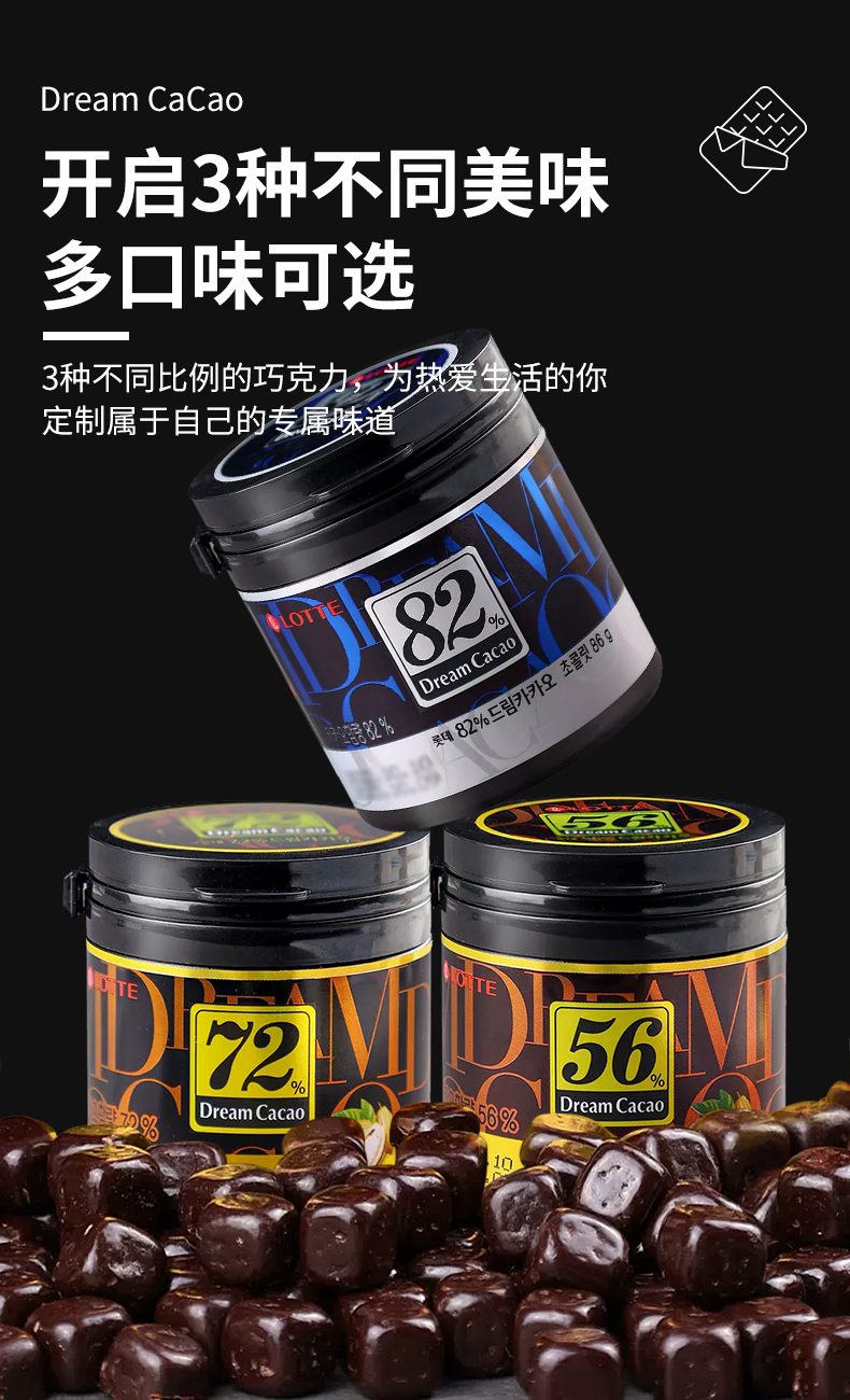 韩国进口LOTTE乐天梦巧克力56%巧克力豆网红休闲零食原装进口零食