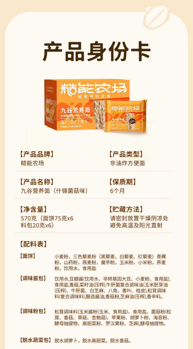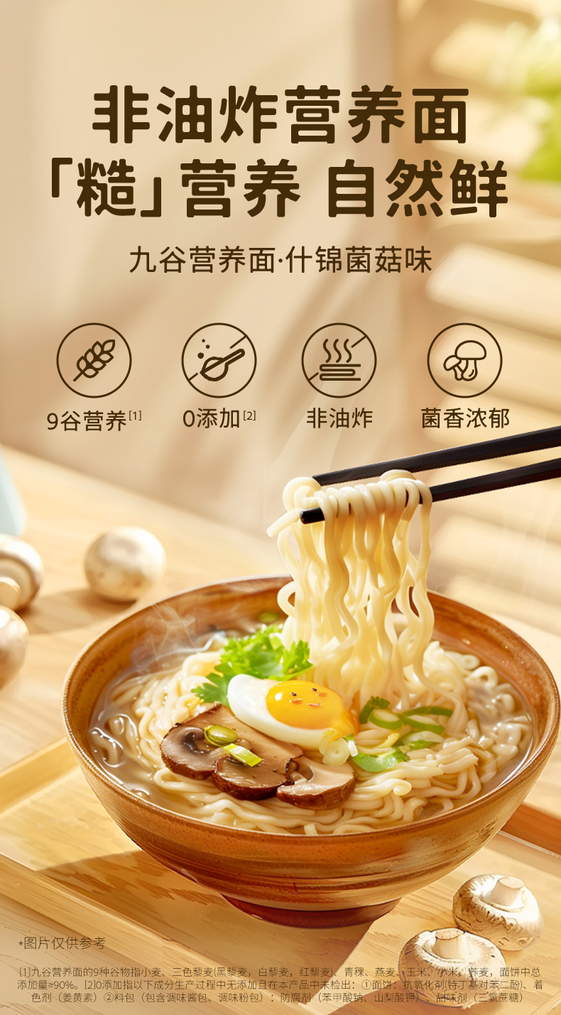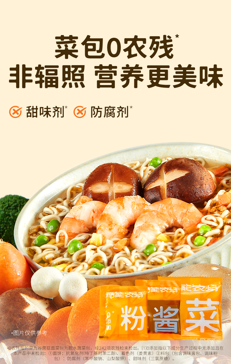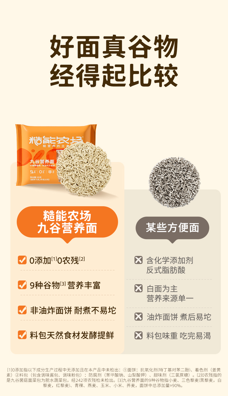 【官方正品】糙能农场九谷营养面儿童方便面非油炸菌香早餐健康汤面