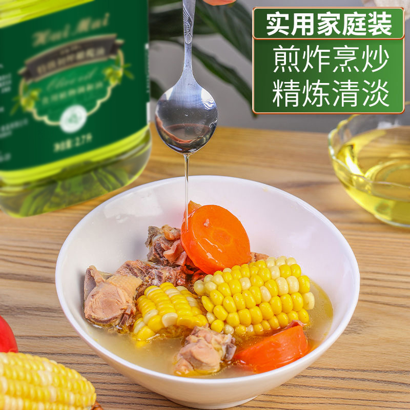 添加初榨橄榄植物调和油2.7L 5斤桶装食用油炒菜