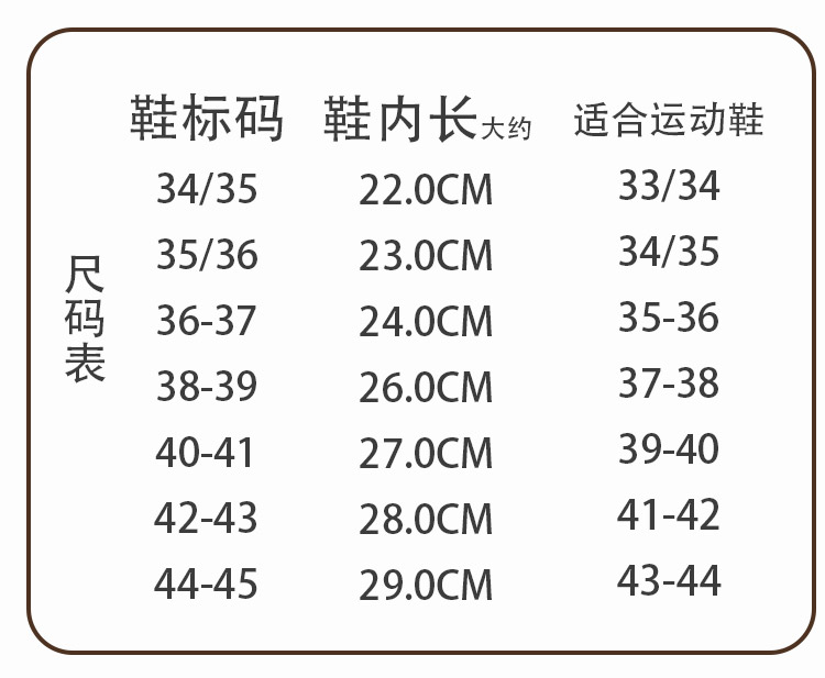 - ¥26.90 棕色【经典款】,35-36(适合平时运动鞋3435脚)