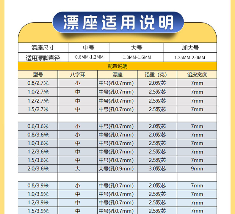- ¥15.80月白竞技线组6.3米,1.0号,2个装【❤️注:根据漂脚直径选择对应的漂座和线号】