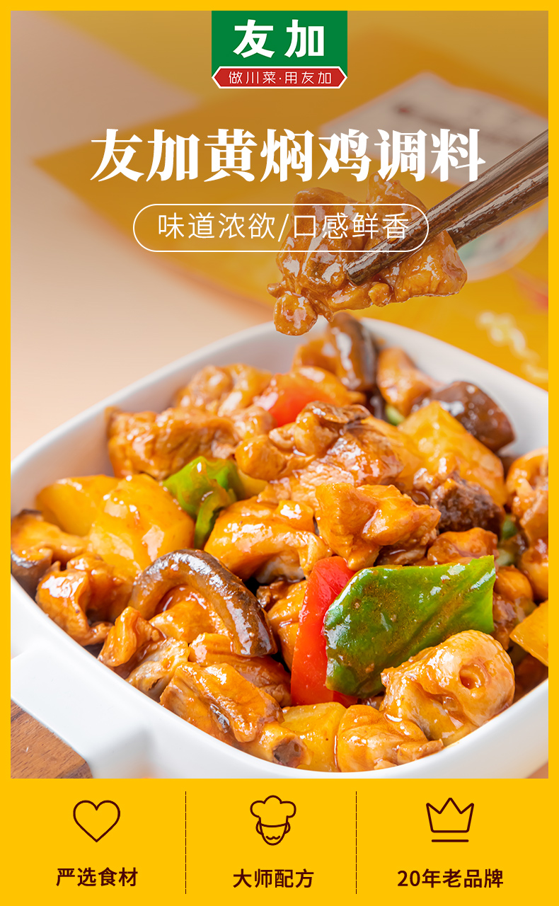 1、友加-20年畅销老品牌-做川菜,用友加 2、正宗四川味,坚持使用优质原料制作地道美味; 线下各商超都有