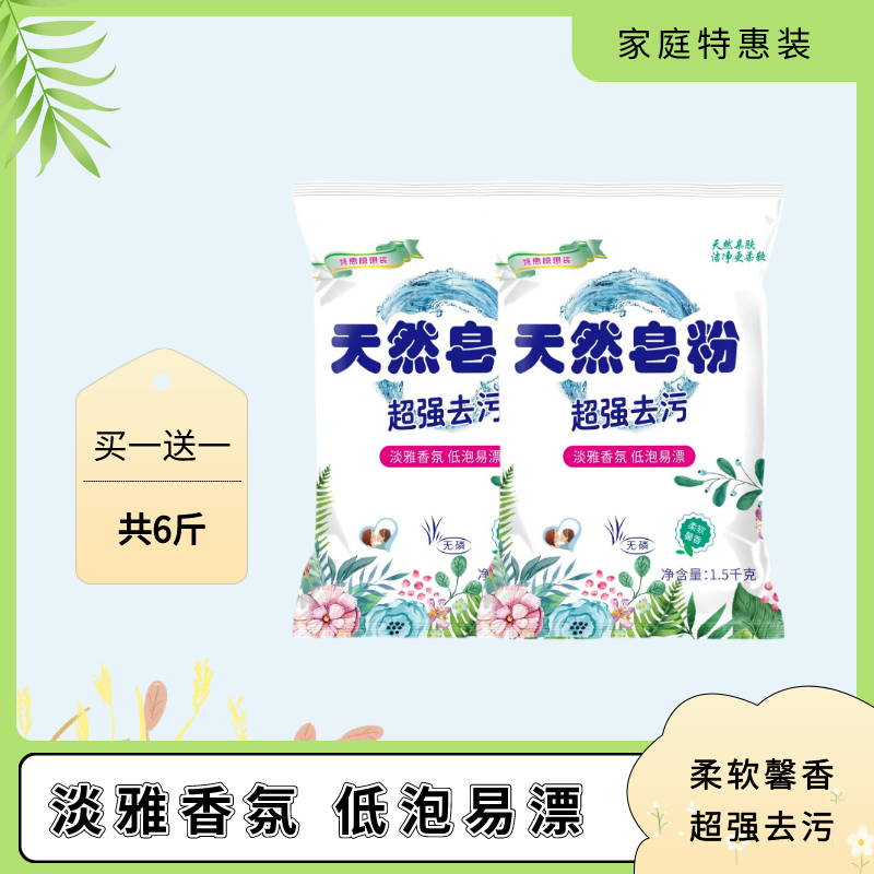【亏品福利】拍1送1共6斤天然皂粉家用去渍去污1.5kg*2
