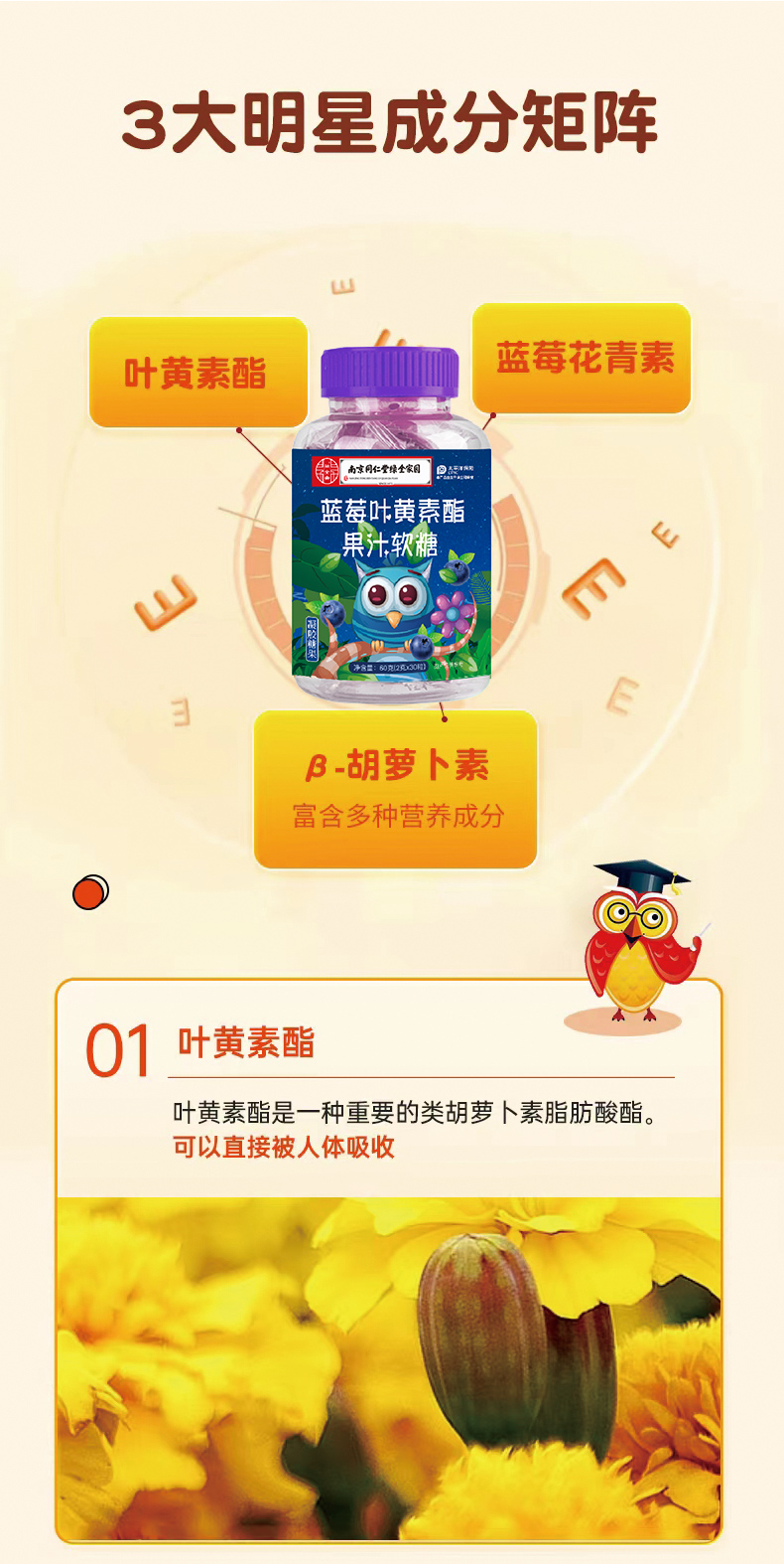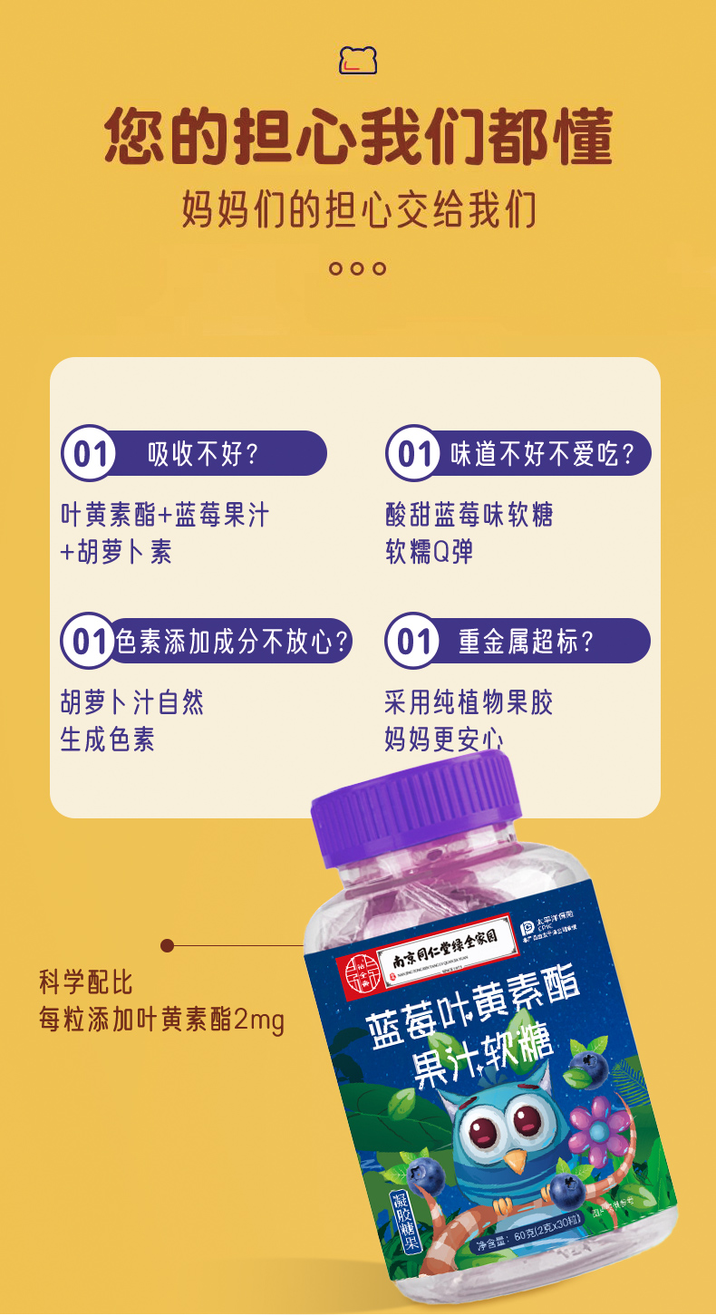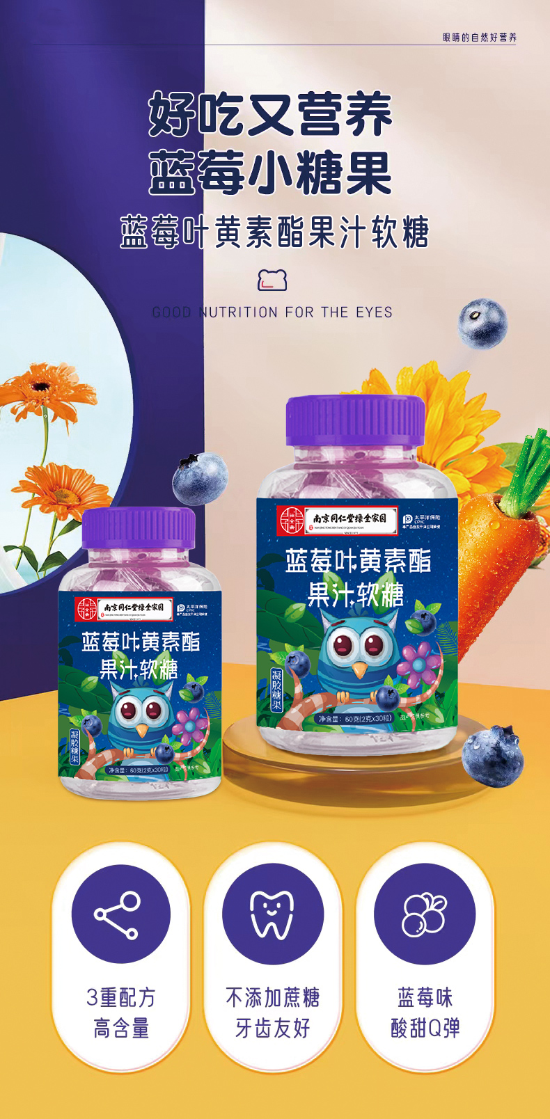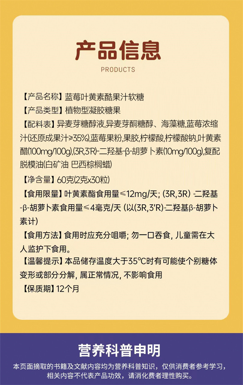 爆浆蓝莓叶黄素软糖多重营养儿童成人携带美味夹心糖