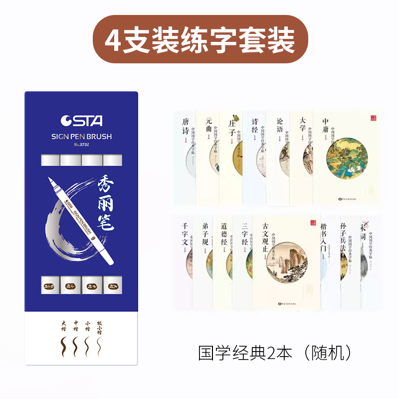- ¥21.66国学经典练字套装(4支彩盒装+国学经典字帖2本随机)