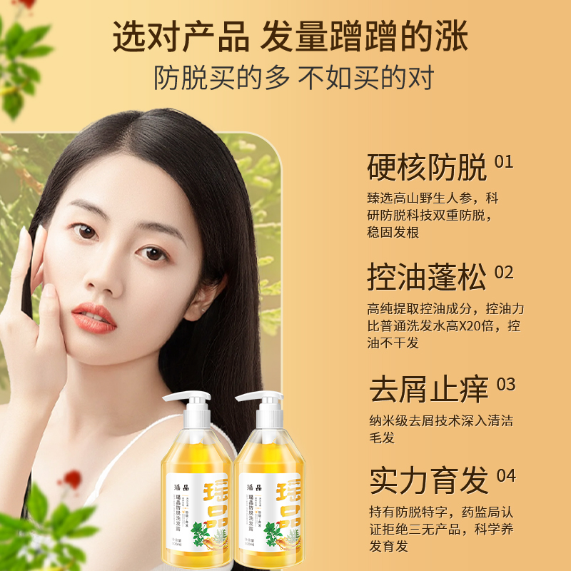 【拍1发3】瑶品防脱育发洗发水 植物精粹养发护发清爽滋养秀发