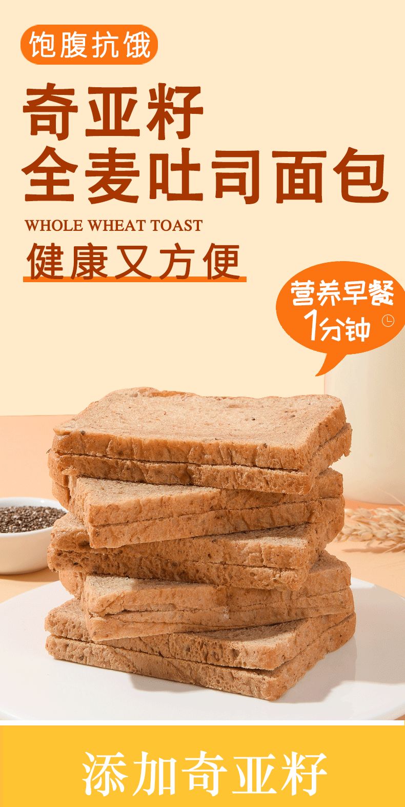 黑全麦整箱奇亚籽全麦面包吐司早餐整箱零食小吃 日期新鲜松软