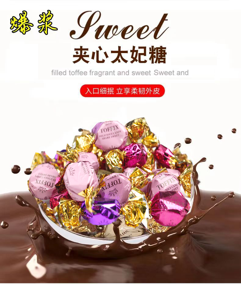 【9.9元1袋500g70颗】爆浆太妃糖巧克力香软糖糖果结婚喜糖袋装年货