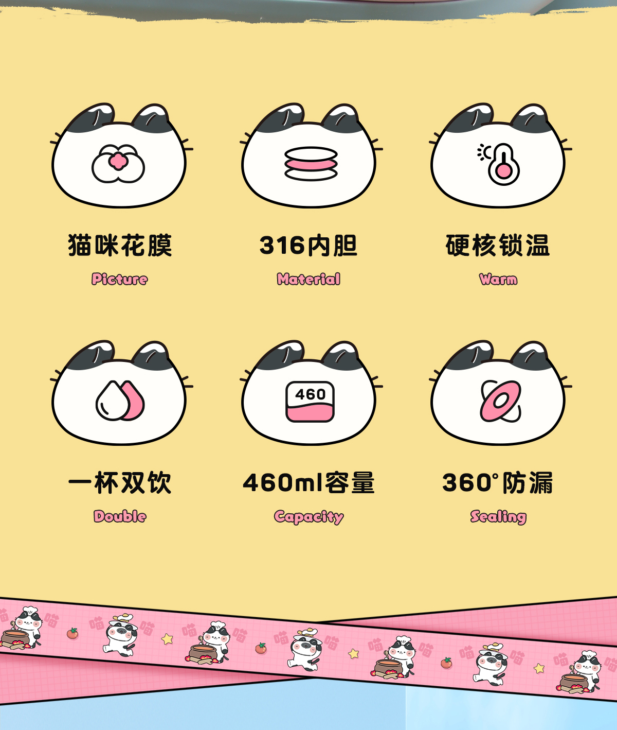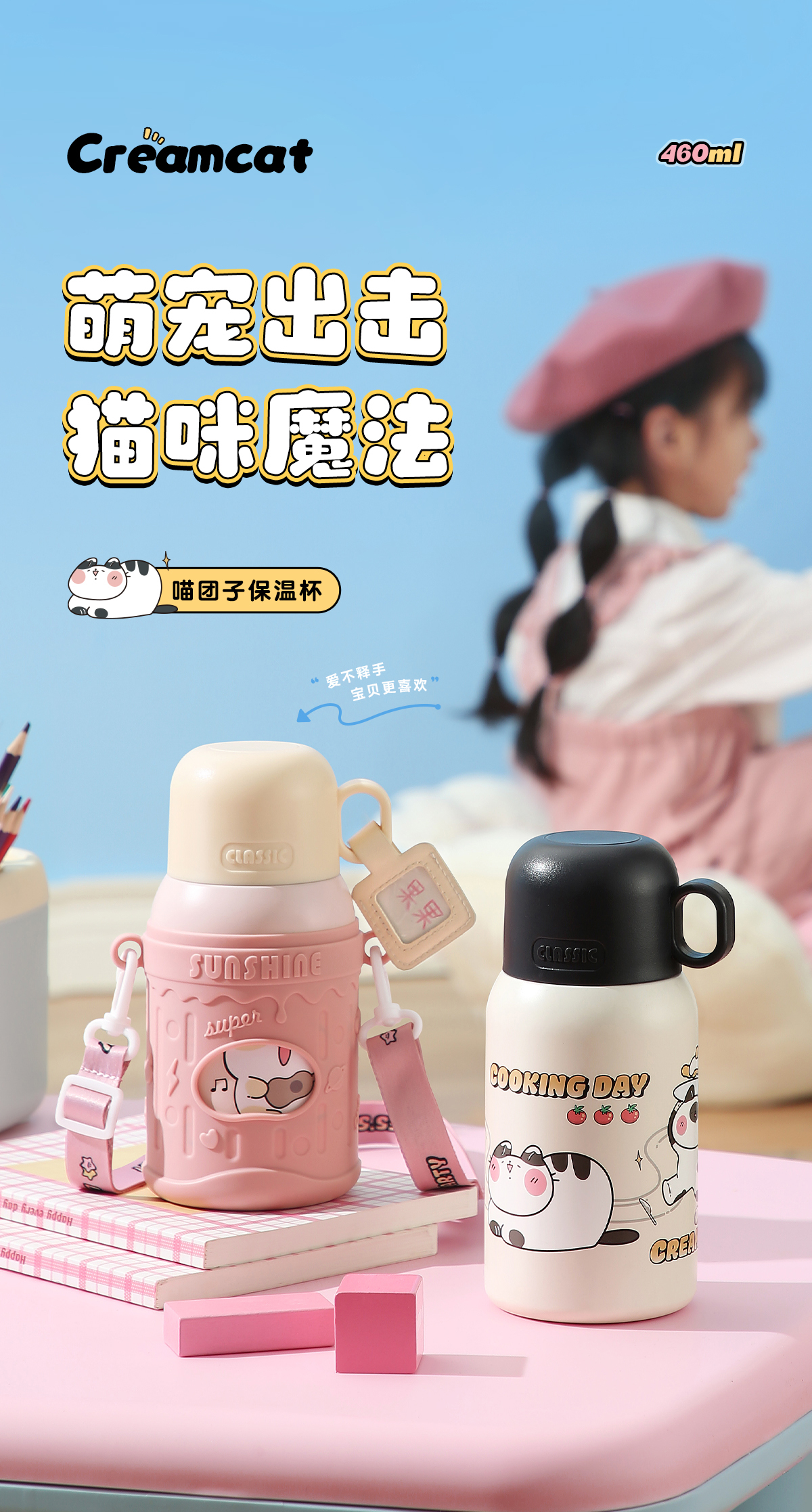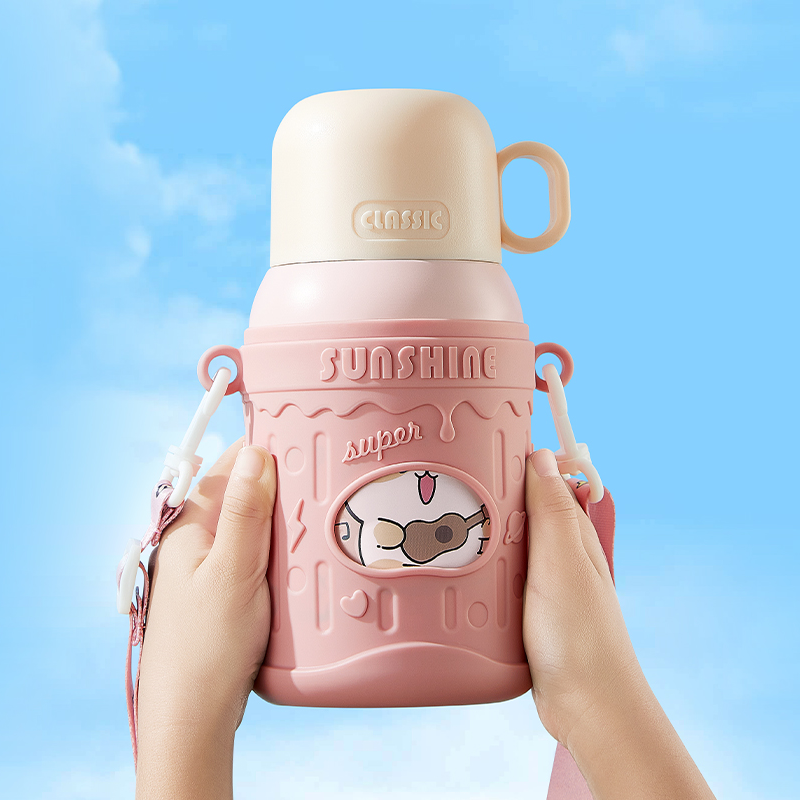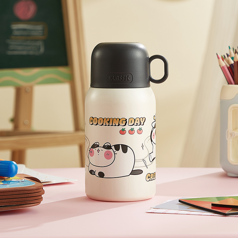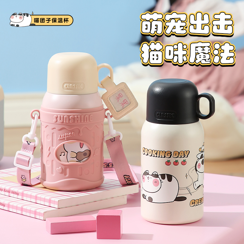 物生物喵团子儿童保温杯上学专用便携两用大容量可爱保温杯小学生
