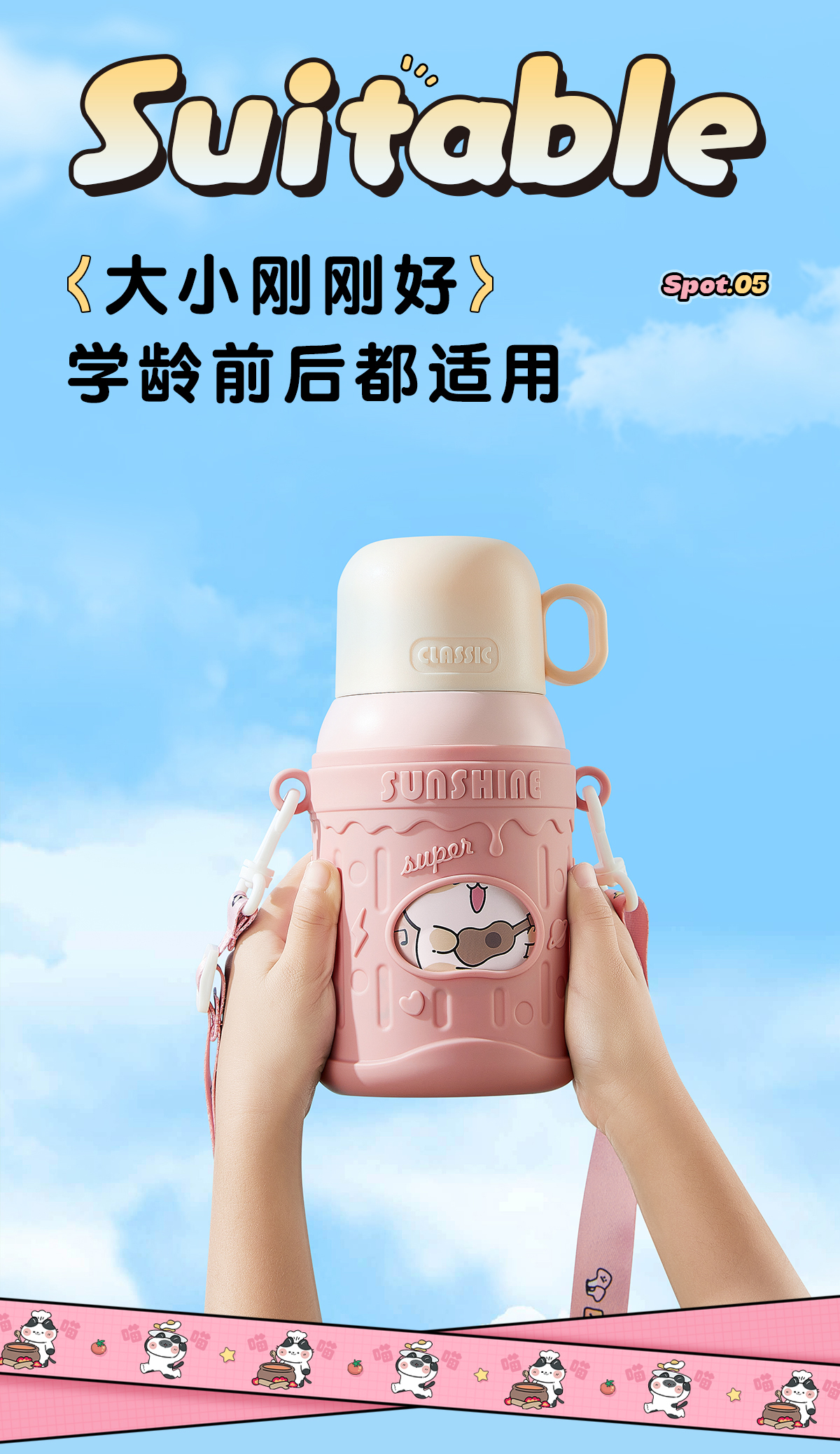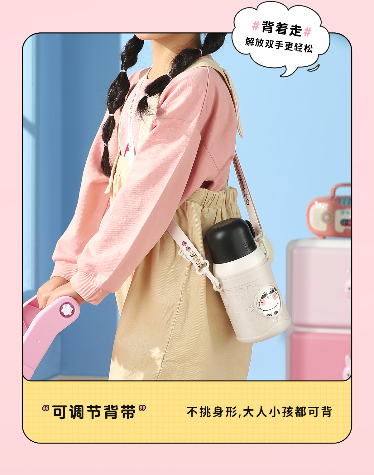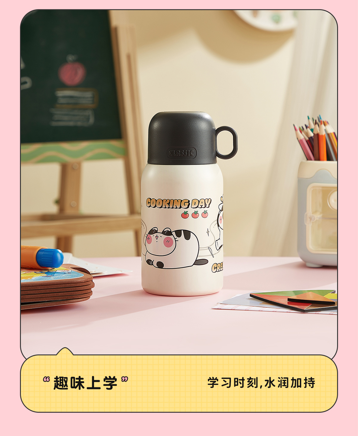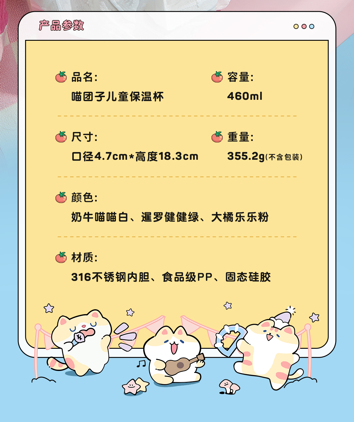 物生物喵团子儿童保温杯上学专用便携两用大容量可爱保温杯小学生