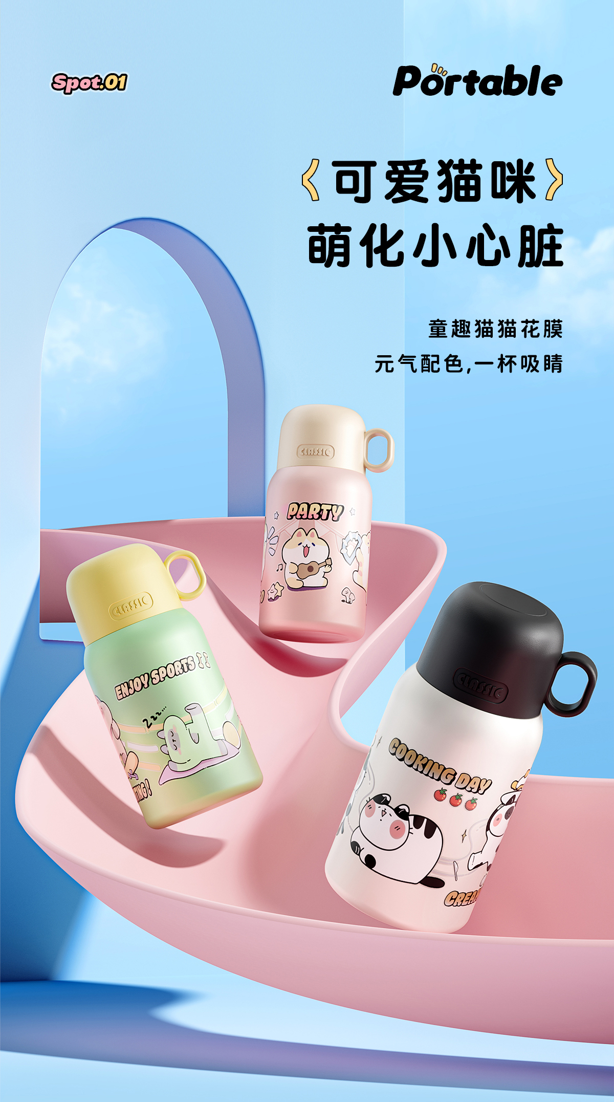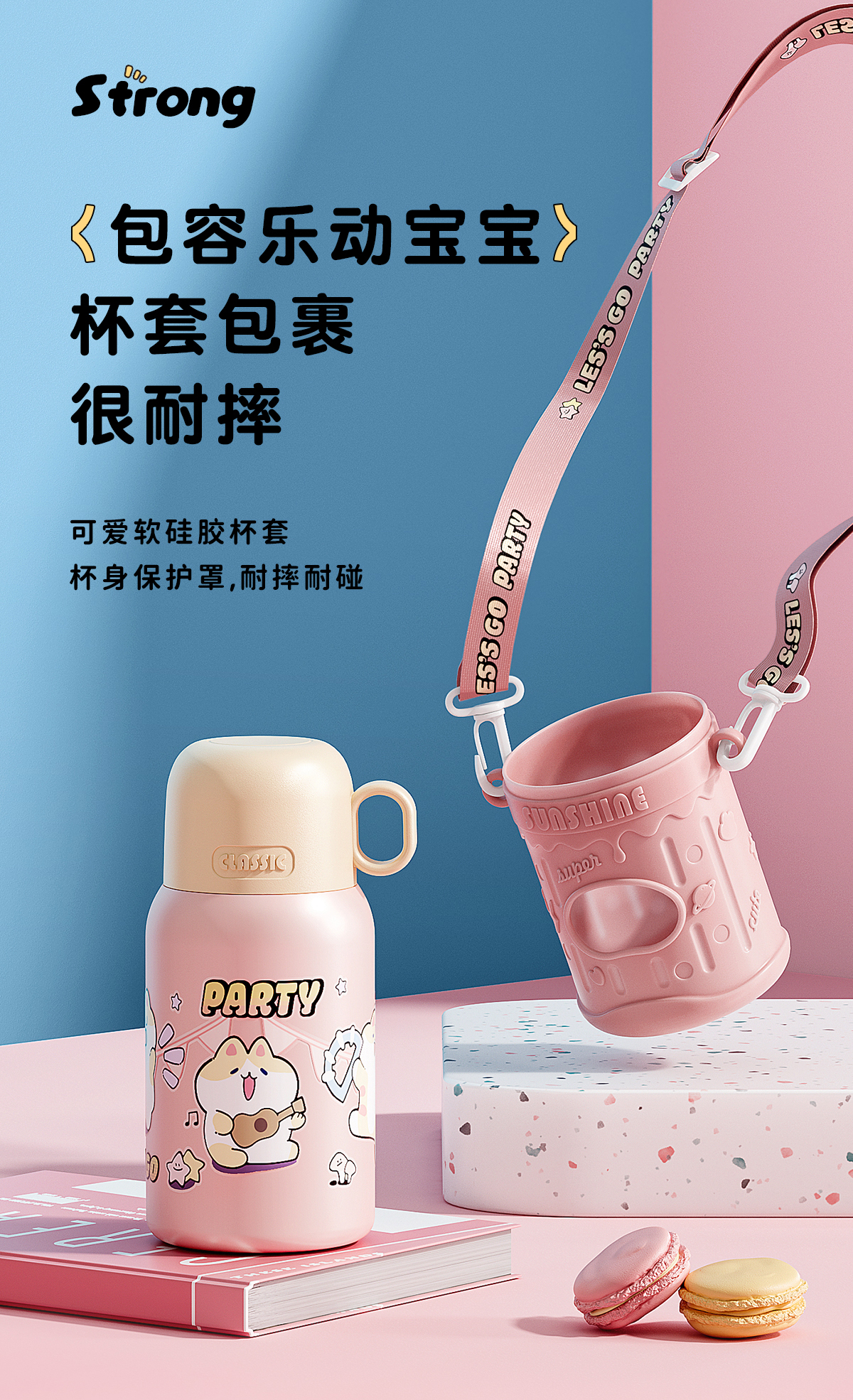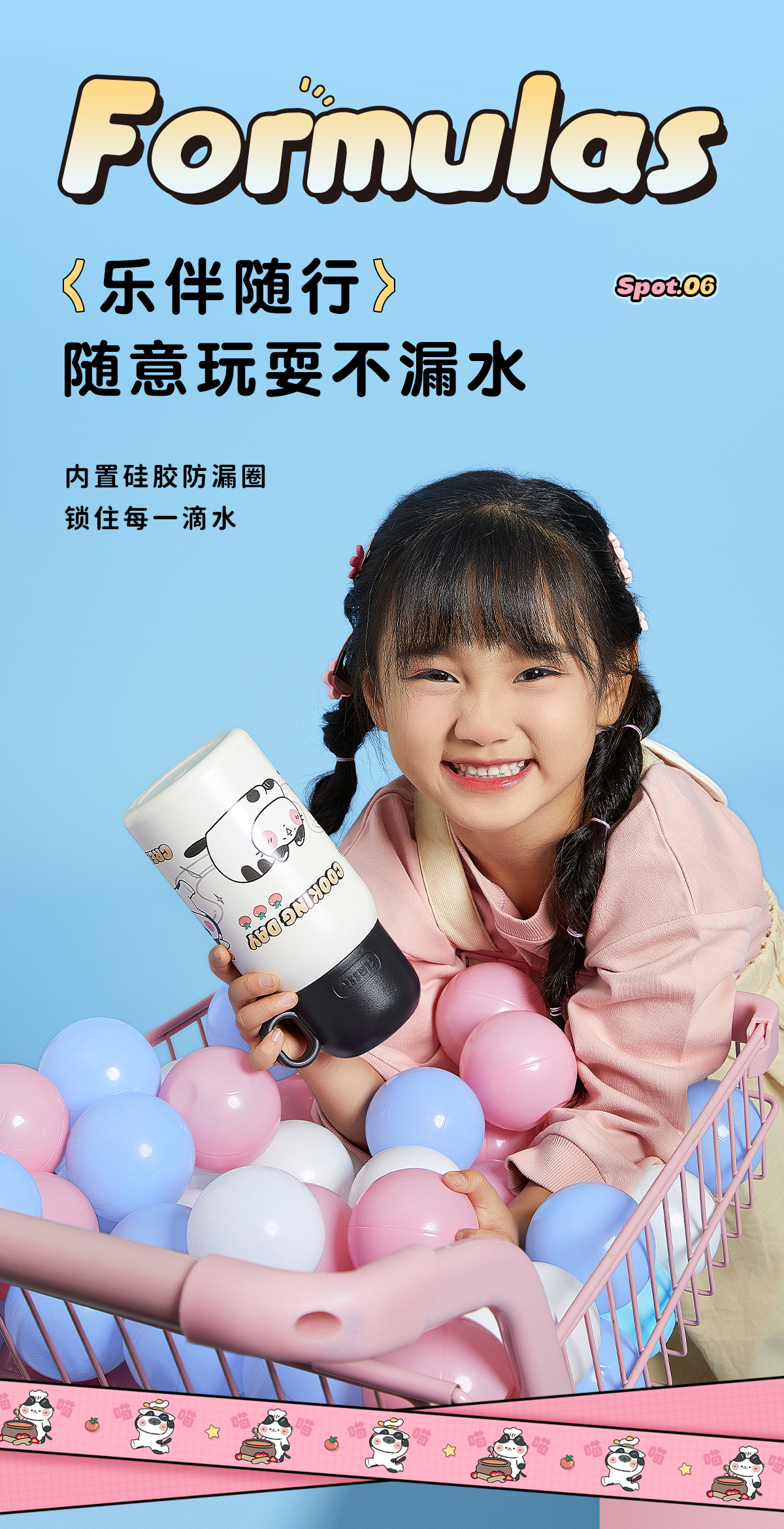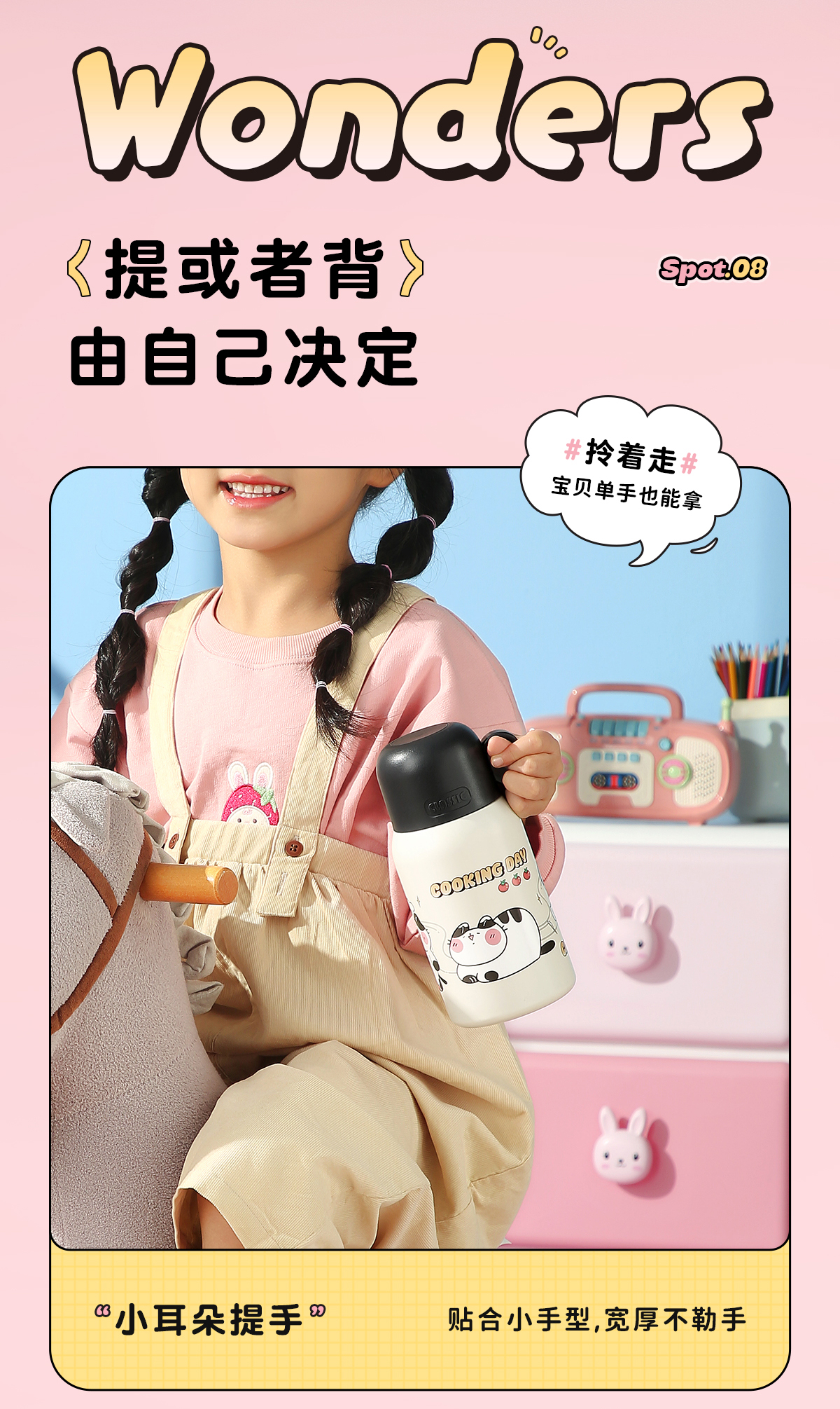 物生物喵团子儿童保温杯上学专用便携两用大容量可爱保温杯小学生